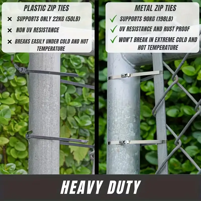 5. 100Pcs Metal Zip Ties,304 Stainless Steel, Heavy-Duty Self-Locking Cable Ties, Suitable for Exhaust Wraps,Chain Link Fencing, Wire Fence Installations, and Outdoor Poultry Enclosures,Must-have to diy,Tiktok shop deal -YY