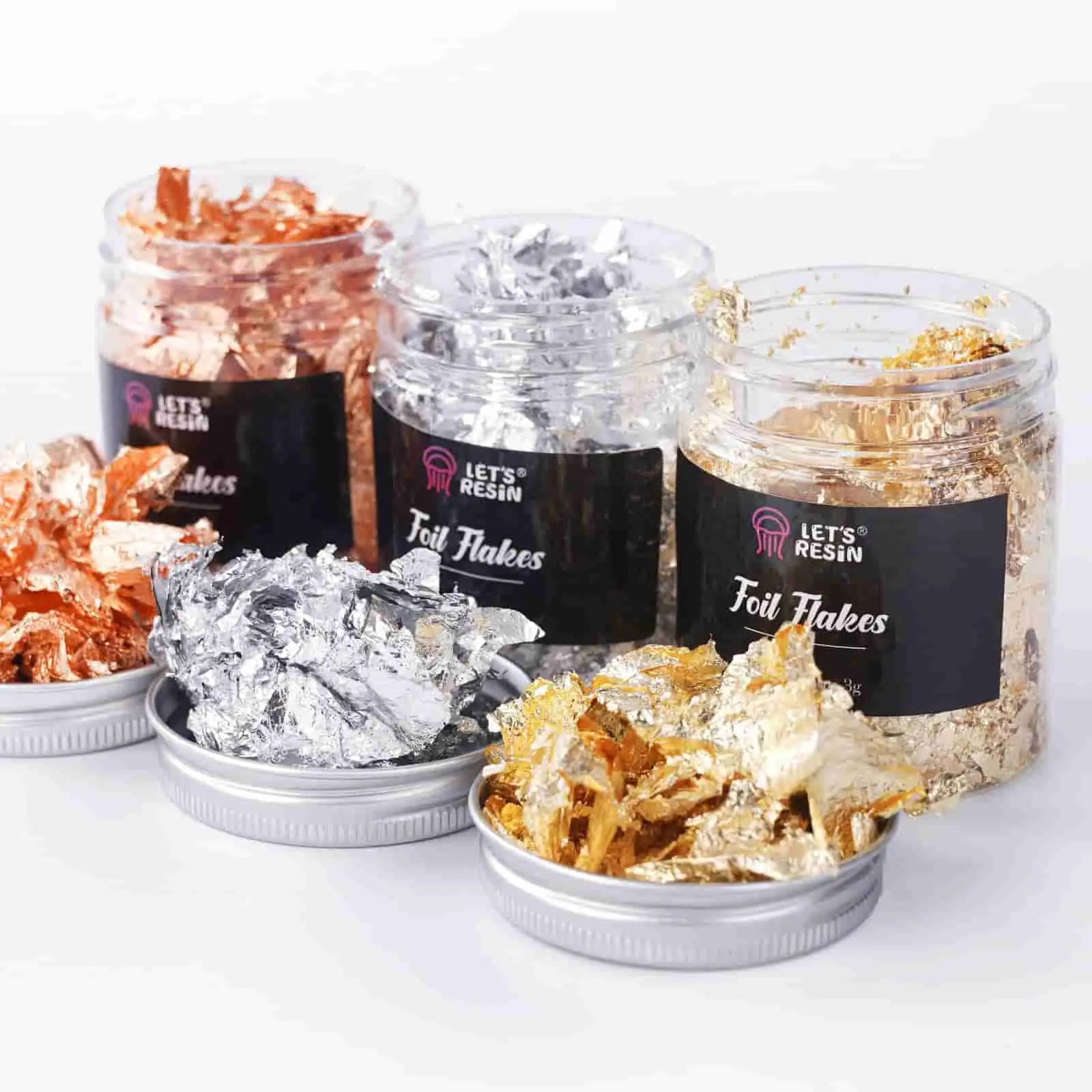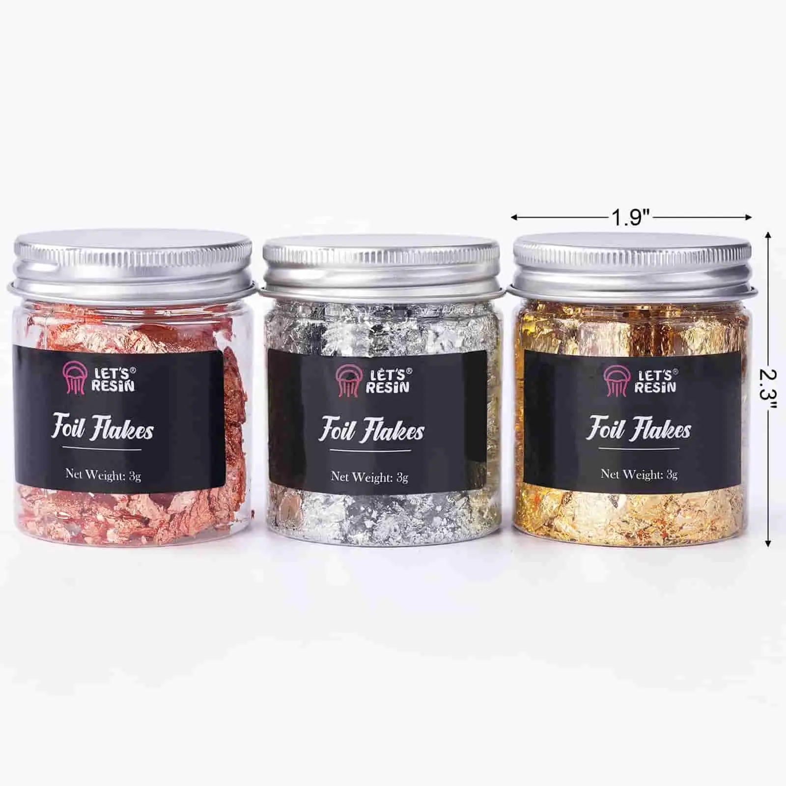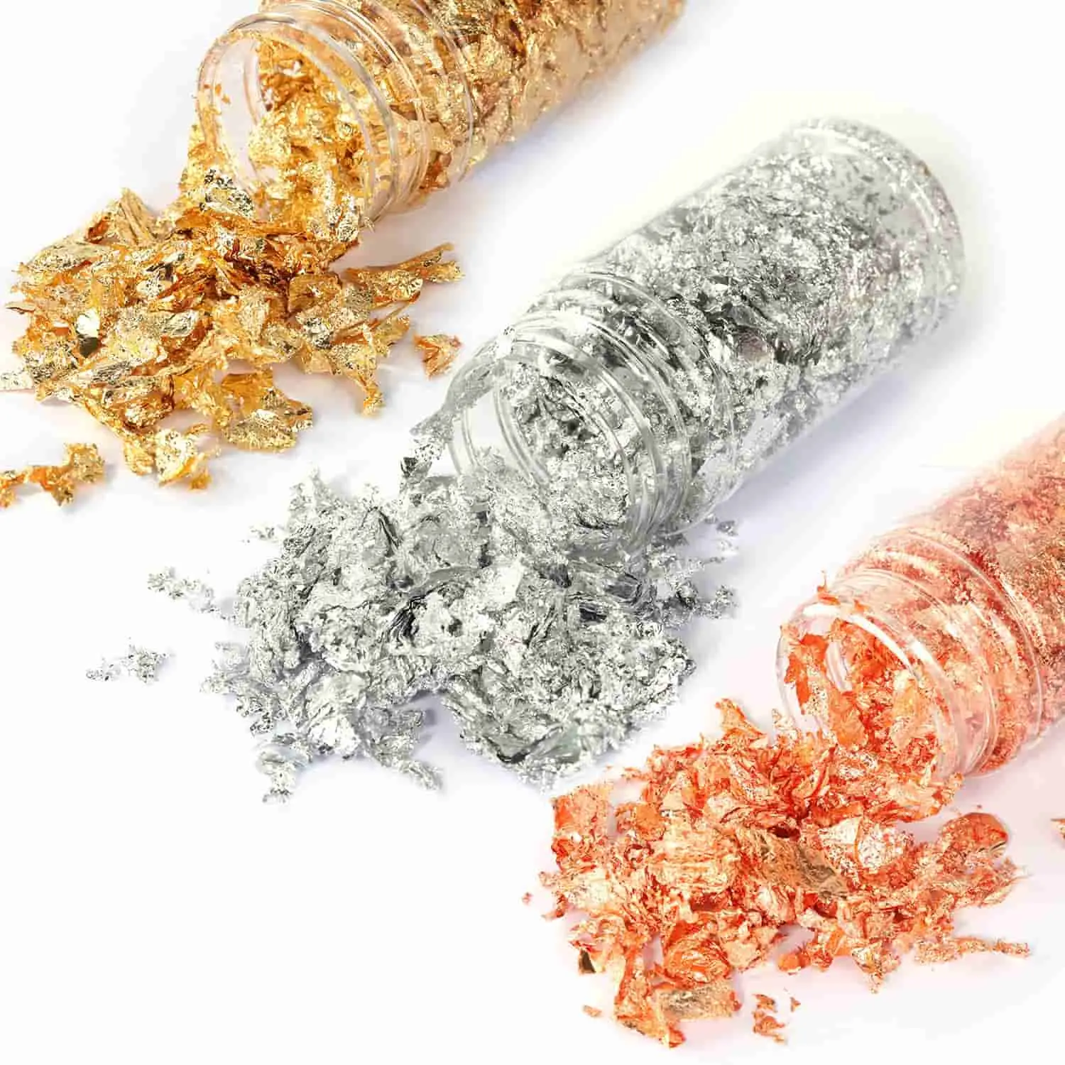 ·Dimension & Material: 3 pots foil chips in 3 colors, copper/gold/silver, 3g each. The major material is copper and aluminum, not real gold. Safe but not for food.
