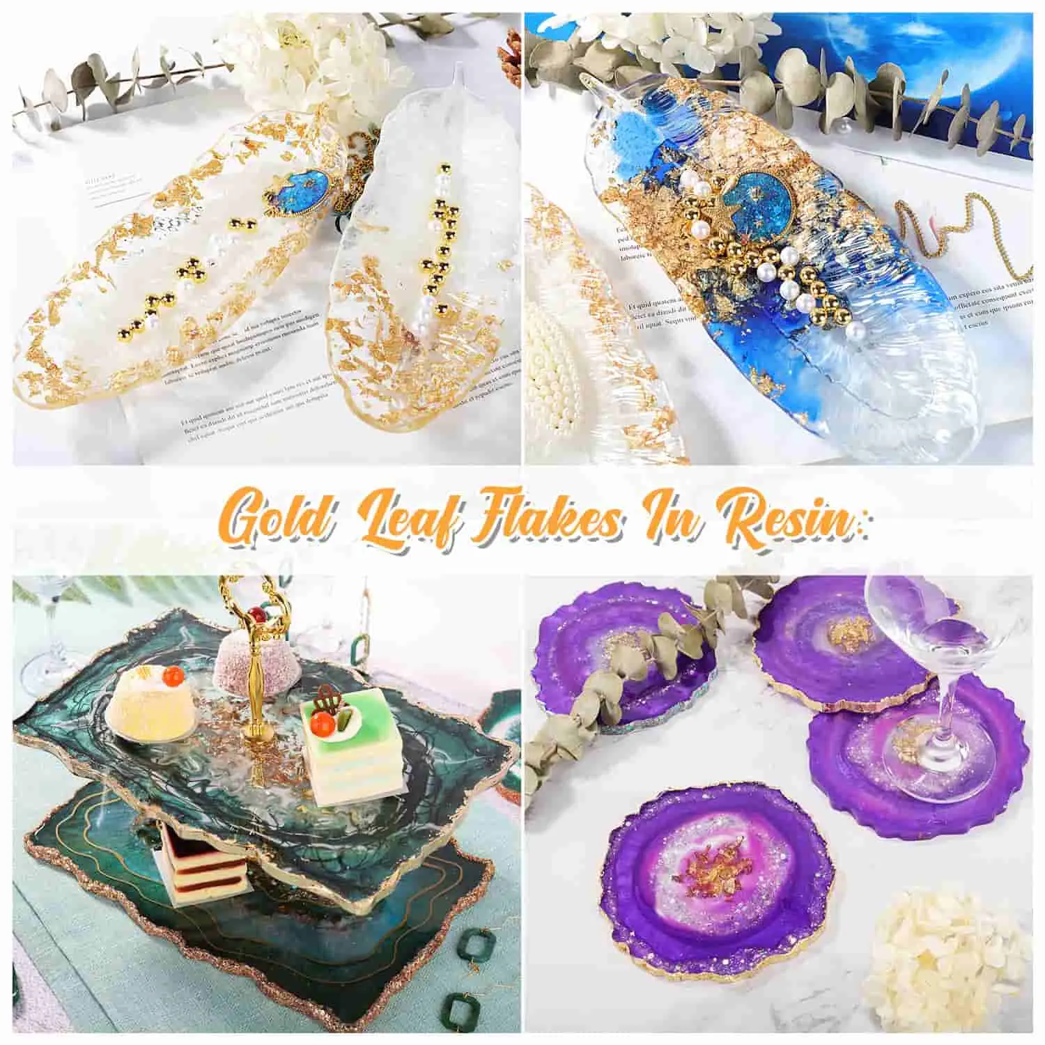 ·Add gold foil flakes to Resin: we have made lots of resin crafts with metallic gold flakes, such as resin coaster, resin tray. Adding gold foil flakes to resin crafts, you will find more gorgeous and shiny resin projects.