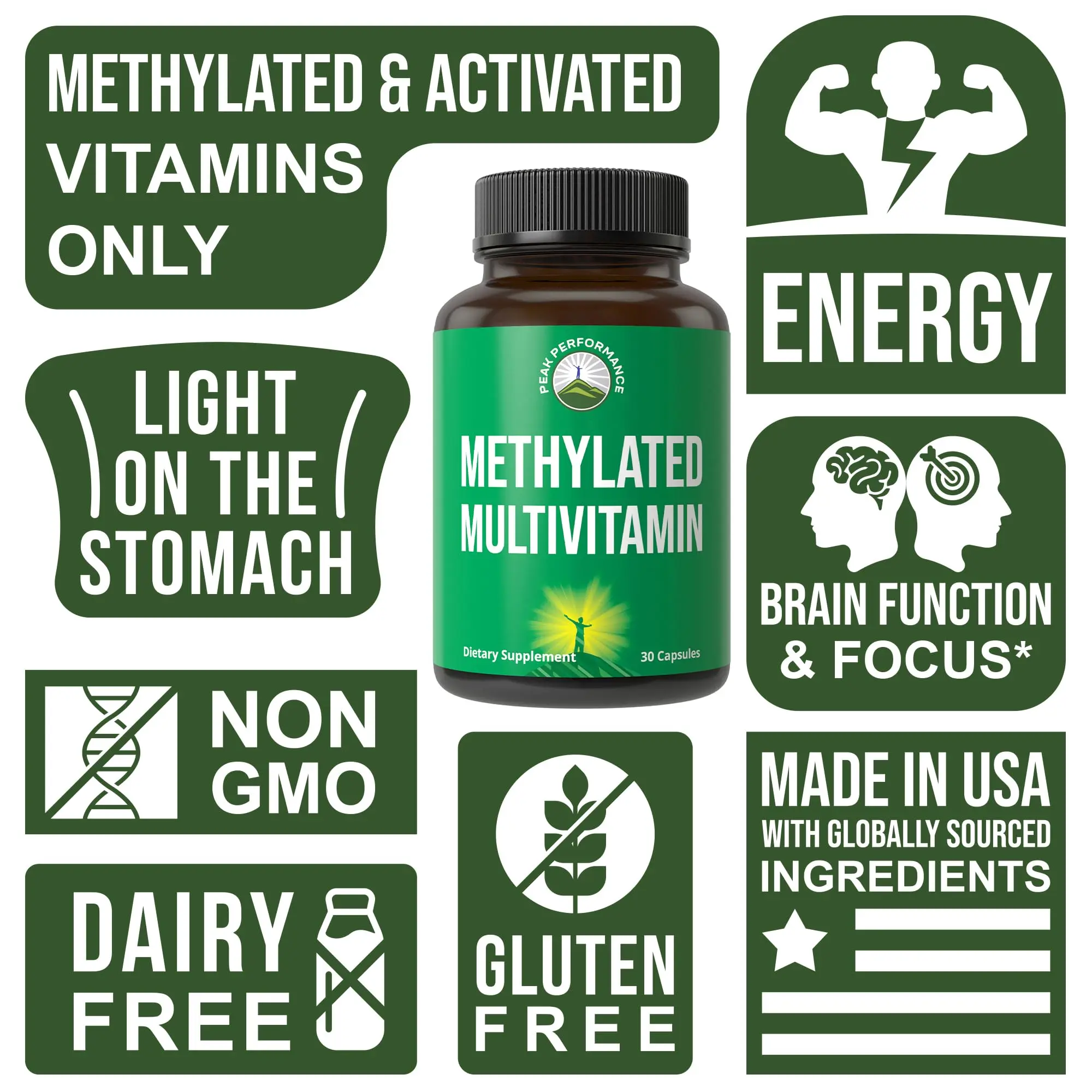 Methylated Multivitamin + Methylated B Complex Power Formula: A comprehensive blend of Only Methylated and Active vitamins that are already usable by the body and do not need to be further converted in order to be bioavailable.