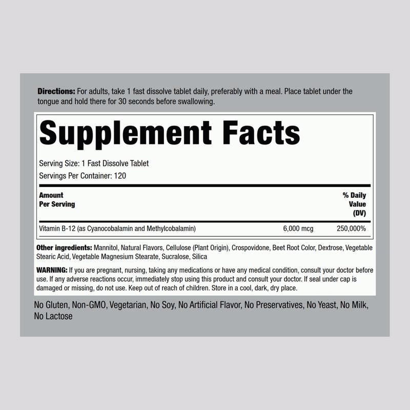 Searching for the ultimate extra strength vitamin B supplement? Introducing our Sublingual B12 high dose and fast dissolvable tablets in the complex form of cyanocobalamin and methylcobalamin that are great for daily use, and have a delicious berry flavor! With 6000 mcg of Vitamin B12, youβll get the nutrients your body wants when it needs them the most. Grab a bottle today!