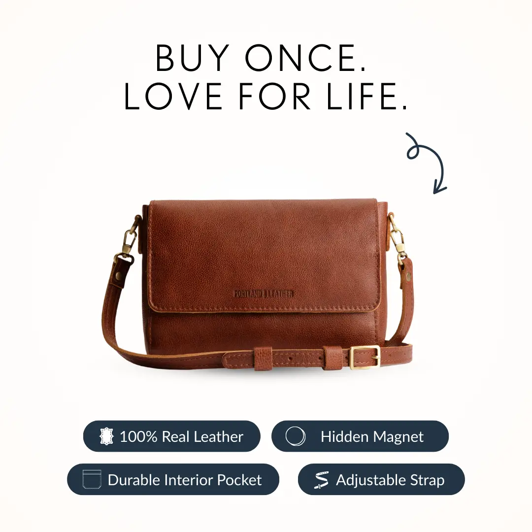 The Metro Crossbody by Portland Leather is a compact leather bag designed to carry everyday essentials in a clean, structured silhouette. Crafted from full grain leather, it offers a durable, streamlined way to keep your essentials close while on the go.