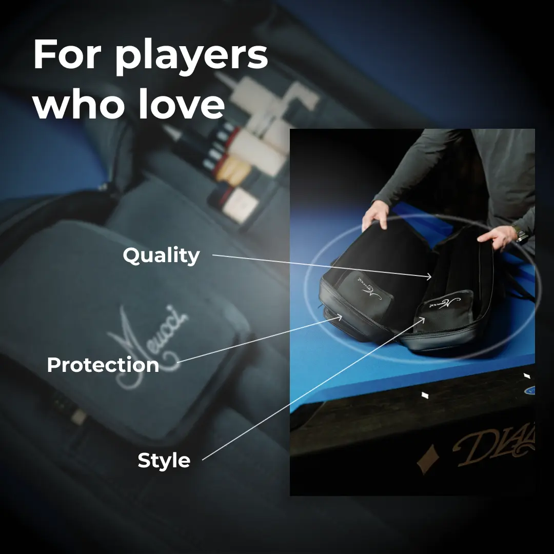Crafted with Meucci’s attention to detail, this cue case offers superior protection and functionality. Its reinforced, water-resistant exterior safeguards your cues from the elements, while padded neoprene sleeves provide secure, cushioned storage. Designed for durability and convenience, it ensures your equipment is always ready for peak performance.