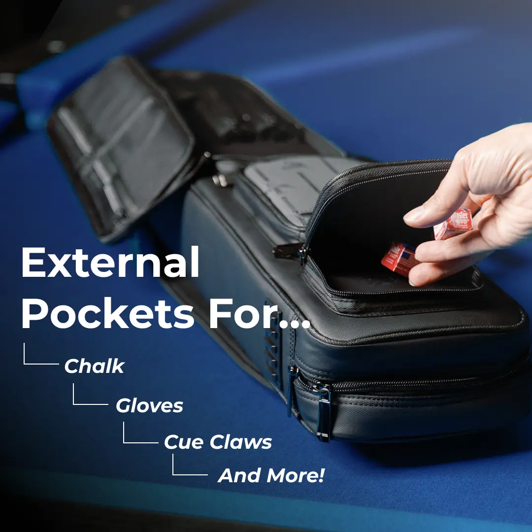 ·Extra Pockets – Store chalk, gloves, cue claws & anything else you need!