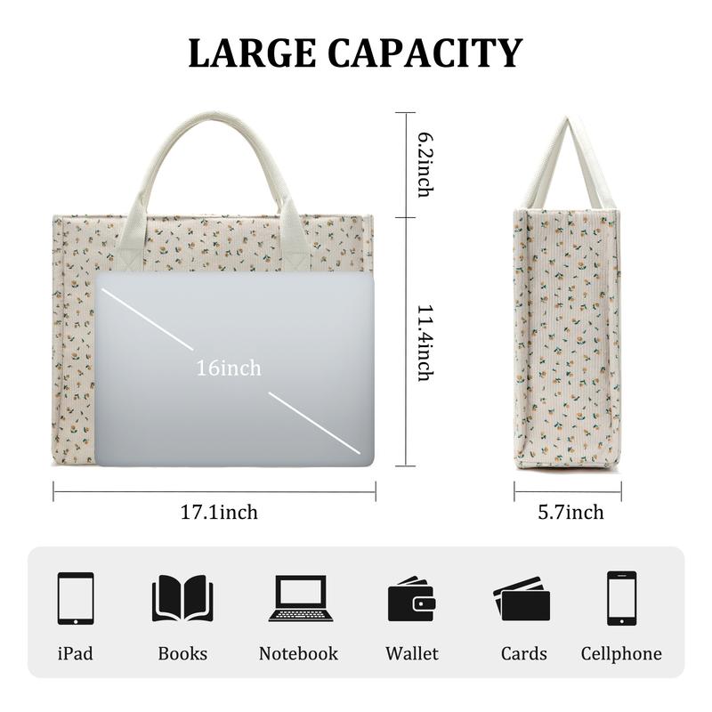 ·SIZE & LARGE CAPACITY: 16.1''L x 6.1''Wx 12.2''H. Tote bag with large capacity for 16 inch laptop, tablets, iPad, magazines, water bottle and more.