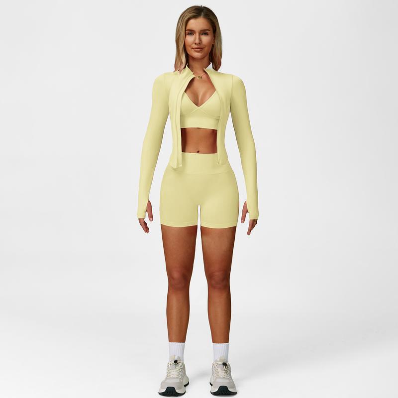 Elevate your workout routine with the MFVIM Women's Sports Three-Piece Set. This versatile set includes impact compression outdoor fitness running activewear. Perfect for everyday workouts, it features high-waist yoga pants that lift your butt. Ideal for running, yoga, and other activities, this set ensures comfort and support.