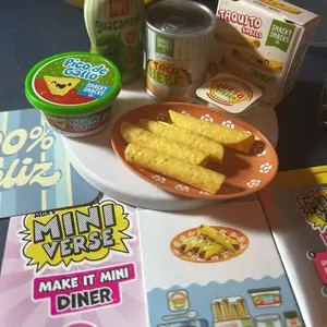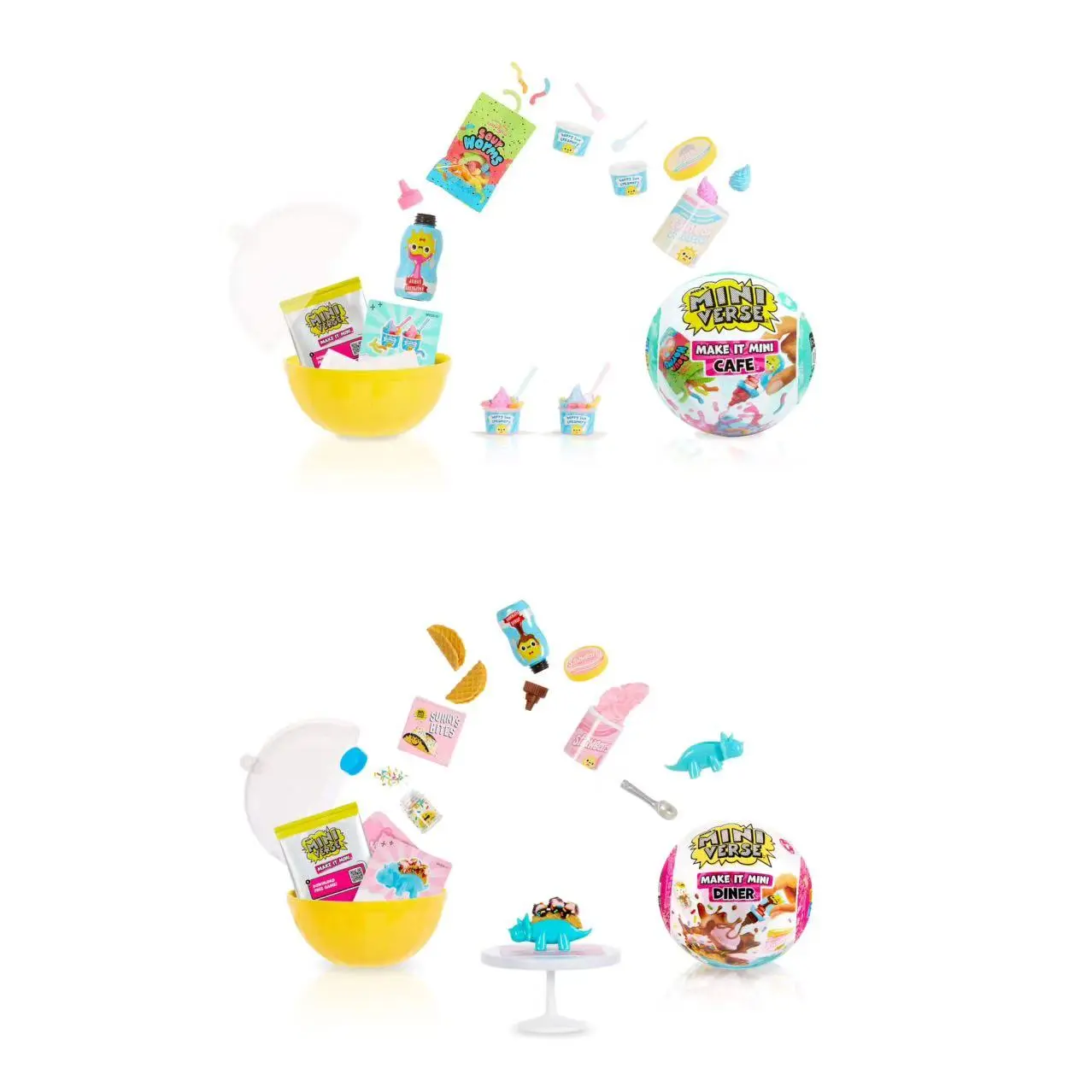 ·Diner Series 4 Bring the fun of a classic diner to life! Each ball includes surprise ingredients and mini accessories—like tables, dishware, and themed décor—to create your own diner mini replicas. Mix, build, and display your creations in style.