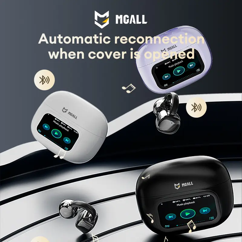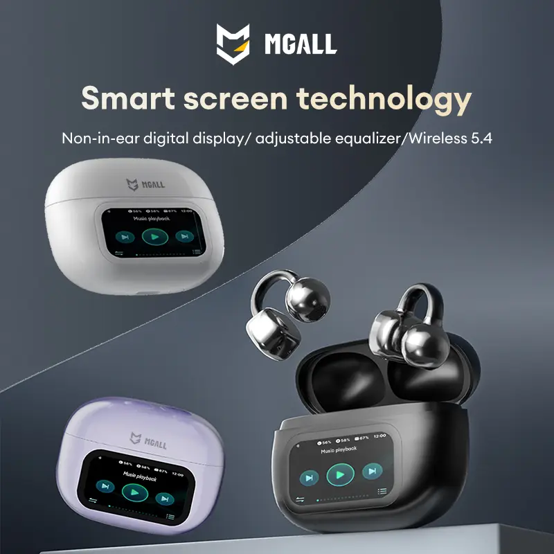 MGALL C02 Clip-On Ear Headphones with LCD Full Color Touch Screen, 2025 New Bluetooth 6.0 for Faster, More Stable Connection & Lower Power Consumption, Audio Wireless Headphones for Music & Phone Calls