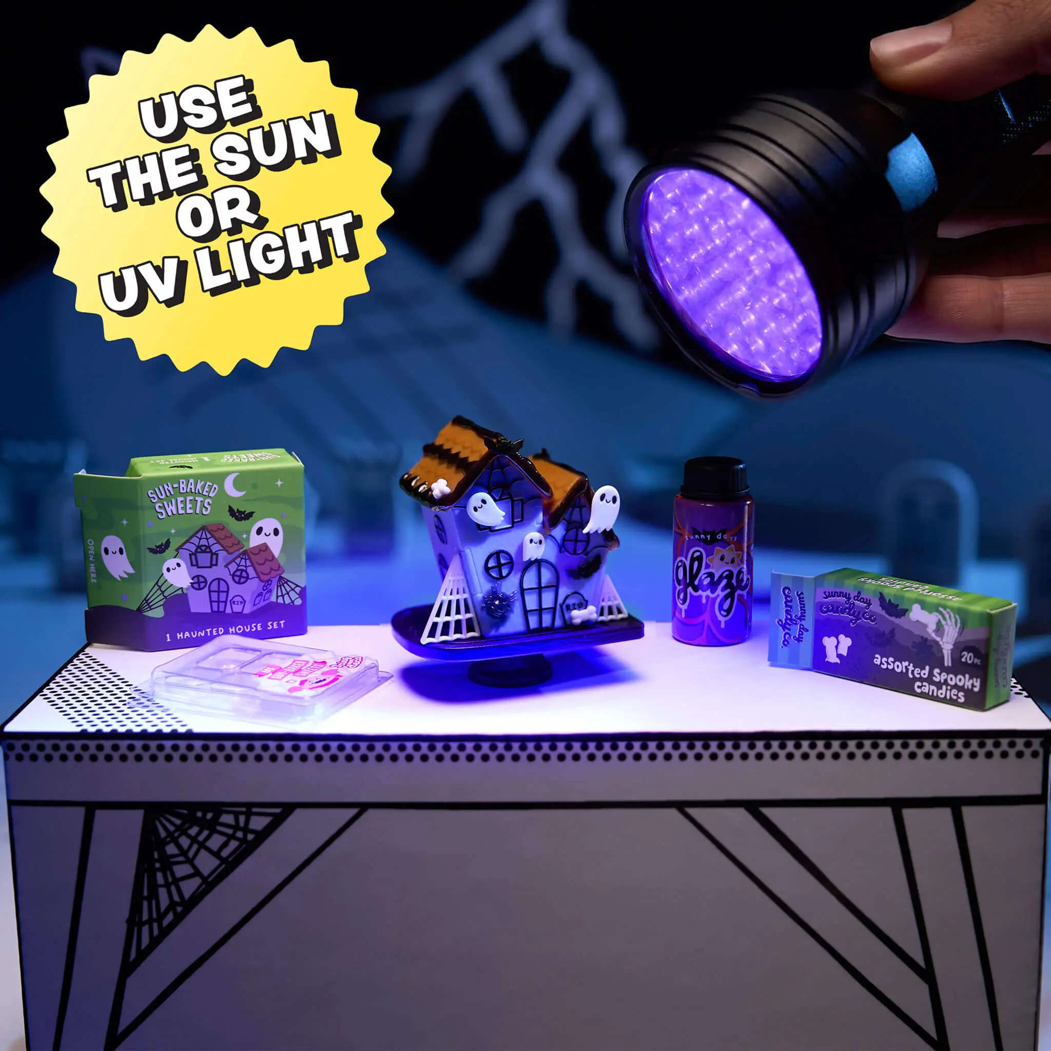 Check the collector's guide to discover which Halloween mini you’ve unwrapped. Then, follow the "recipe" card to create your mini collectible or mix it up with a #MiniverseRemix for extra fun! After you've crafted your mini creation, set it under the sun or use a UV light to harden the resin. Once set, your mini masterpiece is ready to display!