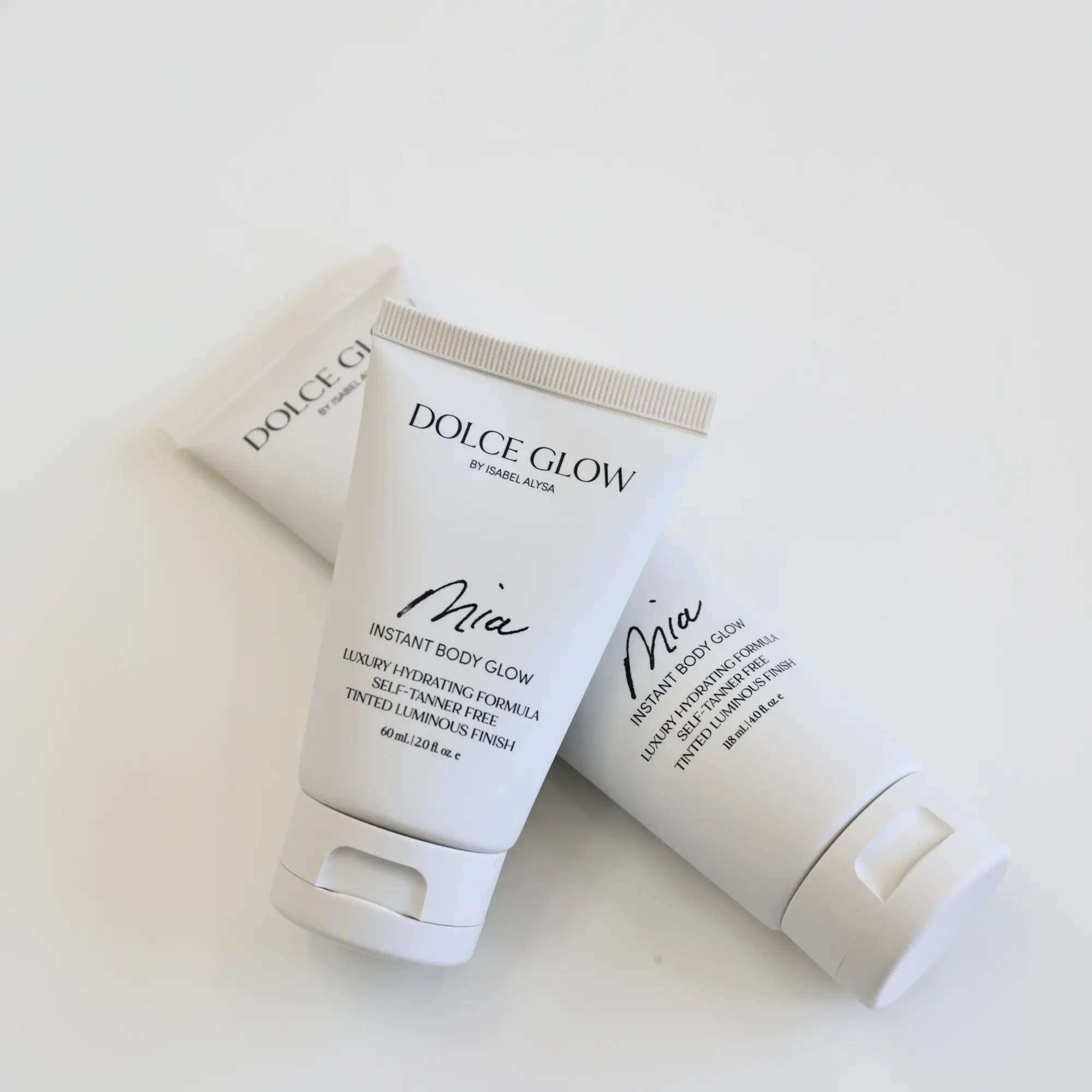 Apply Mia using the Dolce Glow Application Mitt for best results to achieve an even glow. Use circular motions when applying. Mia is best when applied to arms, legs, & décolletage. For a more subtle golden glow, mix Mia with your favorite body lotion. Apply Mia to skin evenly to areas in need of moisture and a radiant glow. Repeat the process as many times as needed until desired bronzed glow has been achieved. Wash hands immediately after use.