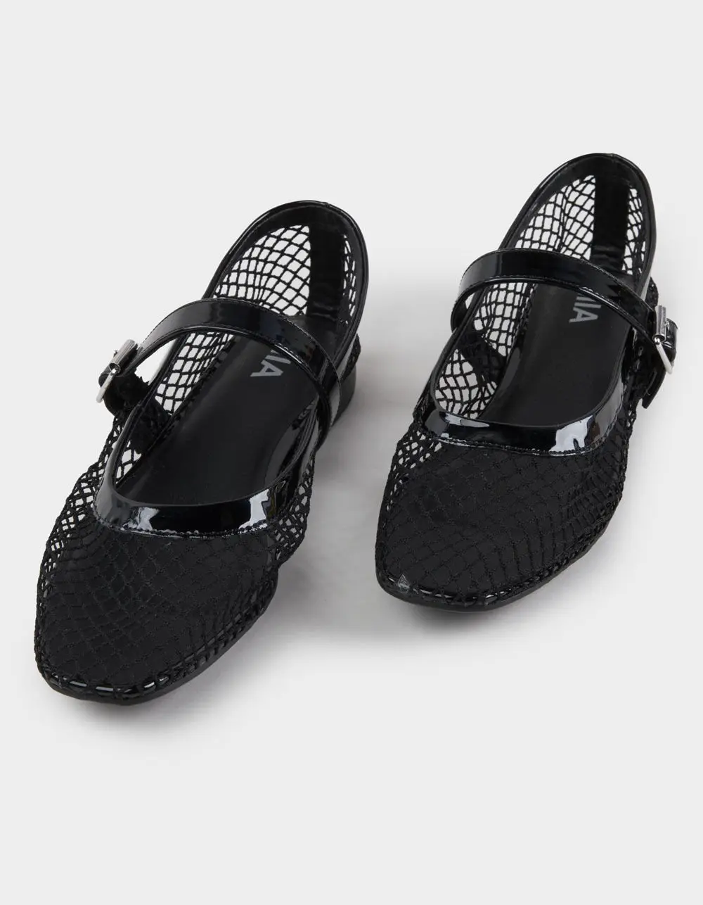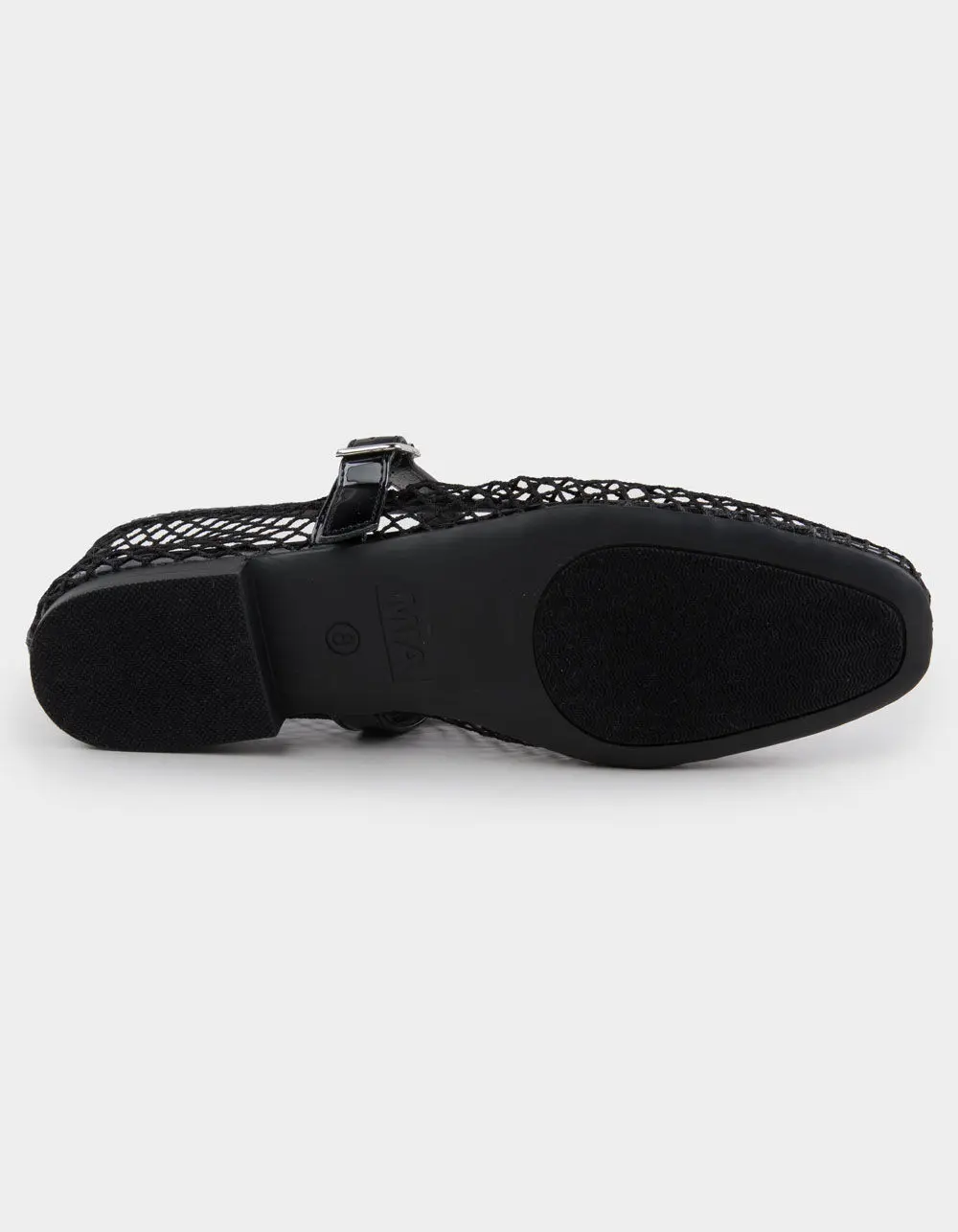 Mia Rayza Mesh Ballet Flats. Step into effortless elegance with the Mia Rayza Mesh Ballet Flats, a chic blend of modern style and classic femininity. These airy mesh flats feature sleek high-gloss trim for a polished touch, while the pointed toe adds a sophisticated edge. A delicate single strap with a metal buckle enhances both style and security, ensuring a snug fit. Designed with a textile and manmade upper and finished with a fabric outsole, these flats offer lightweight comfort for all-day wear. Perfect for dressing up or down, they’re a must-have staple for any fashion-forward wardrobe. Imported.