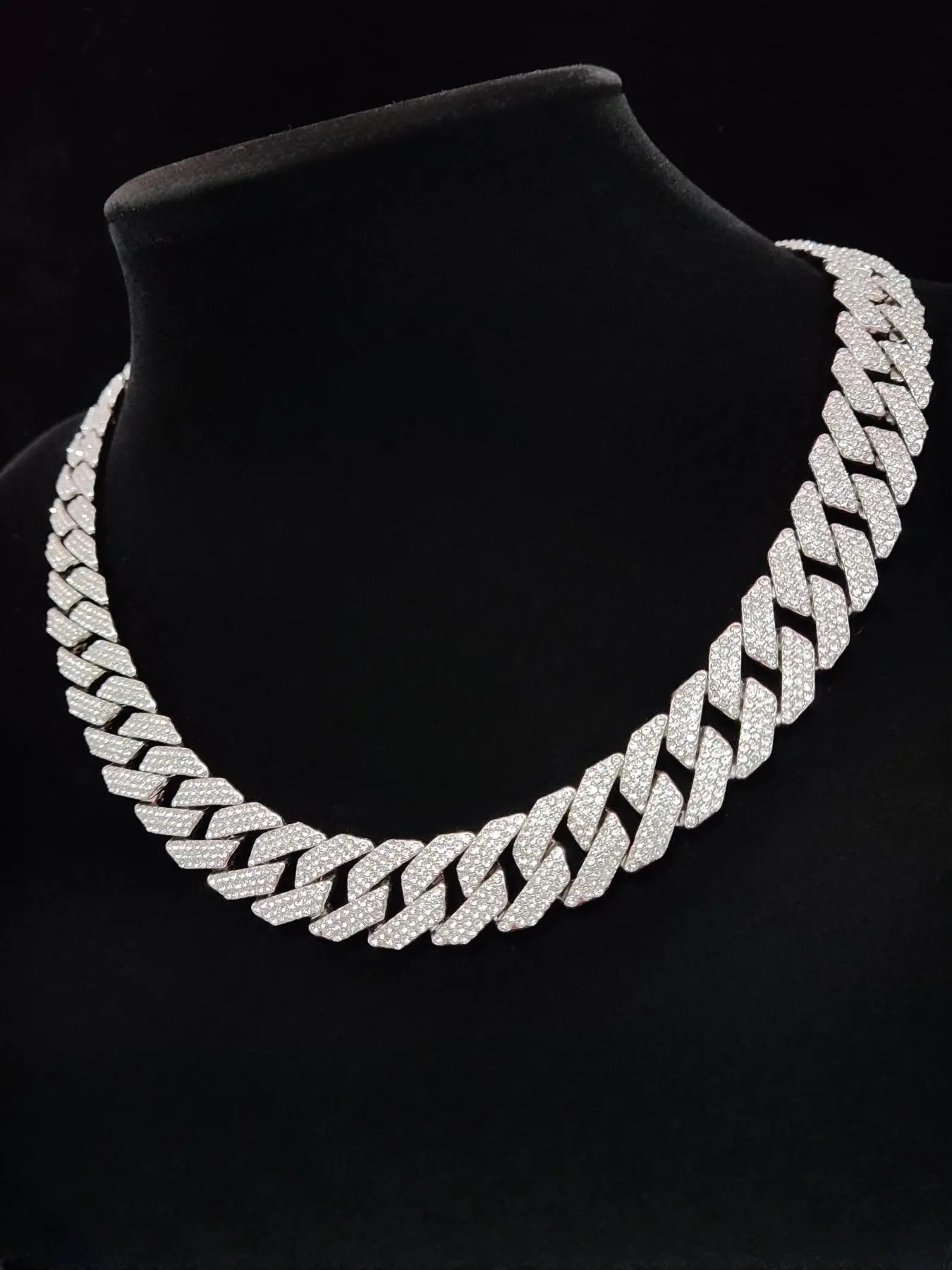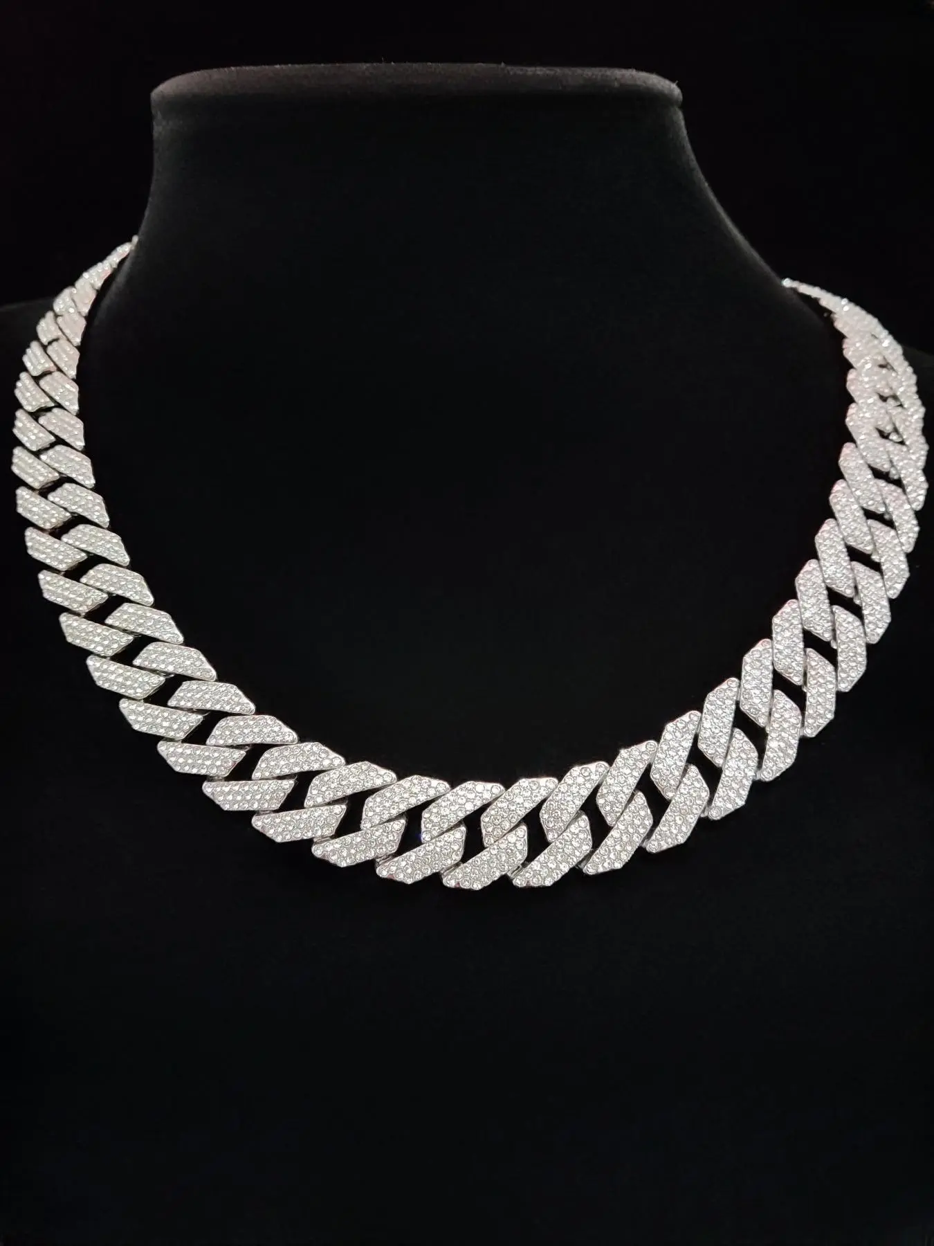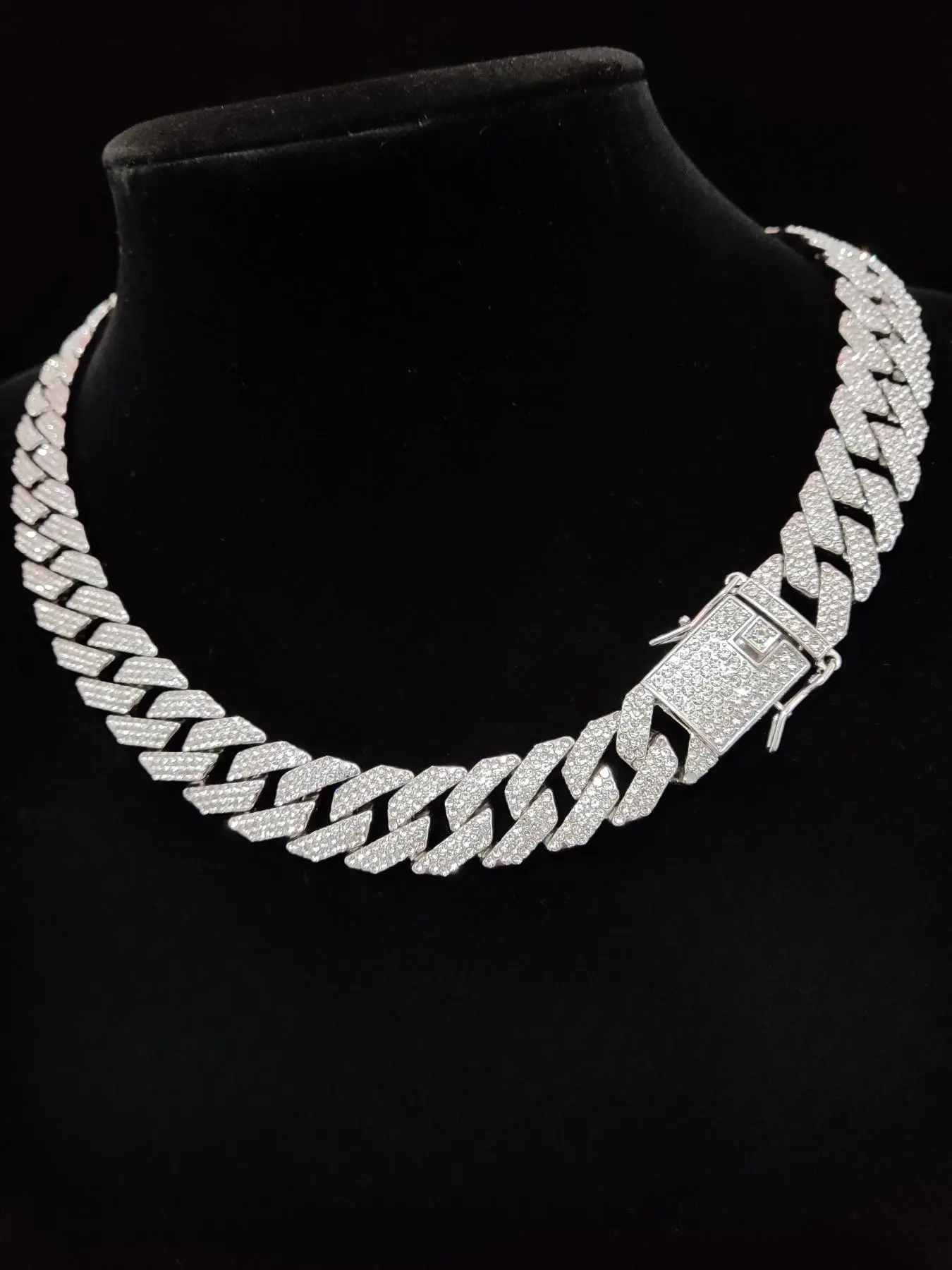ă#N21ă10mm S925 Silver Cuban Chain Synthetic Moissanite Necklace for Men Unisex Shiny Hip Hop Jewelry