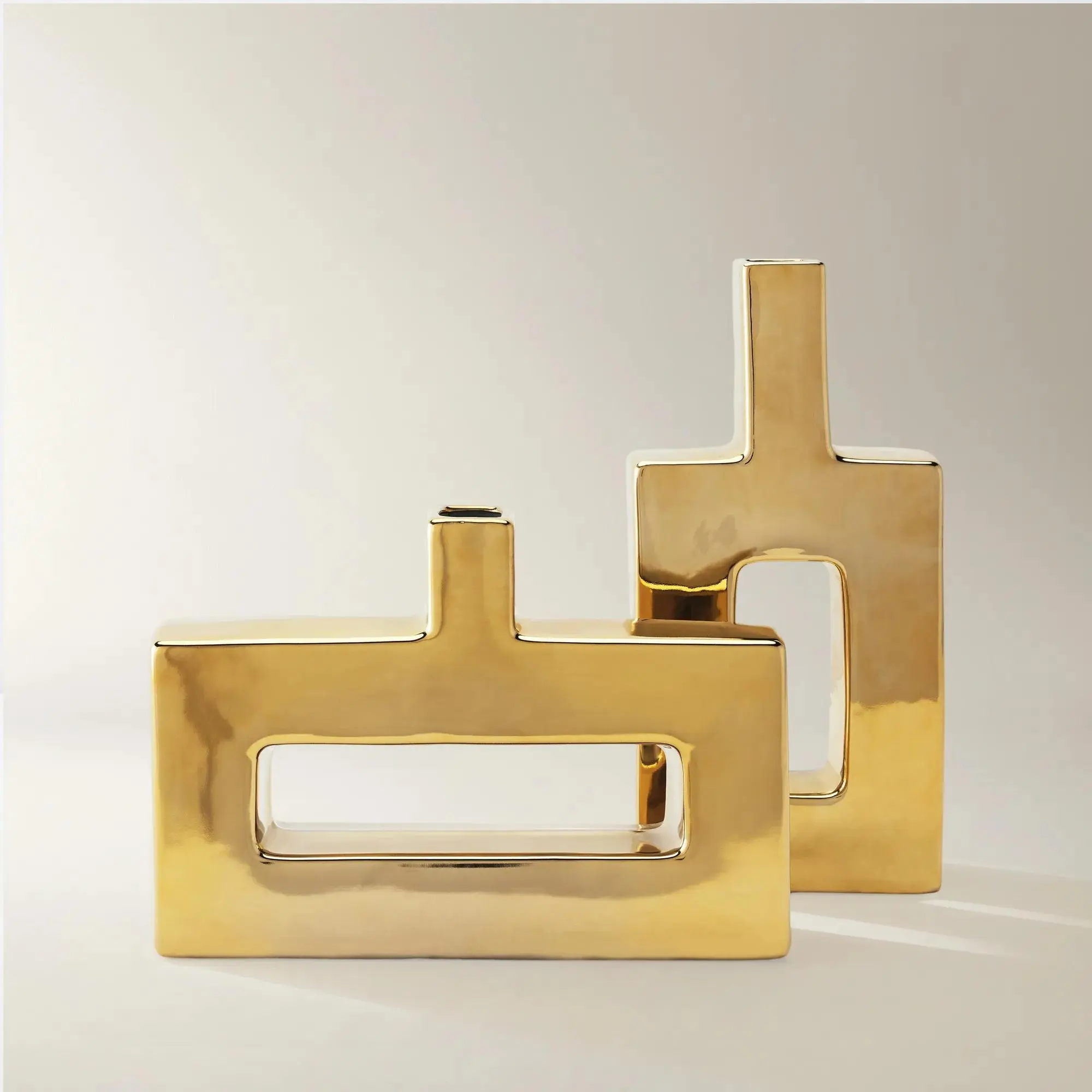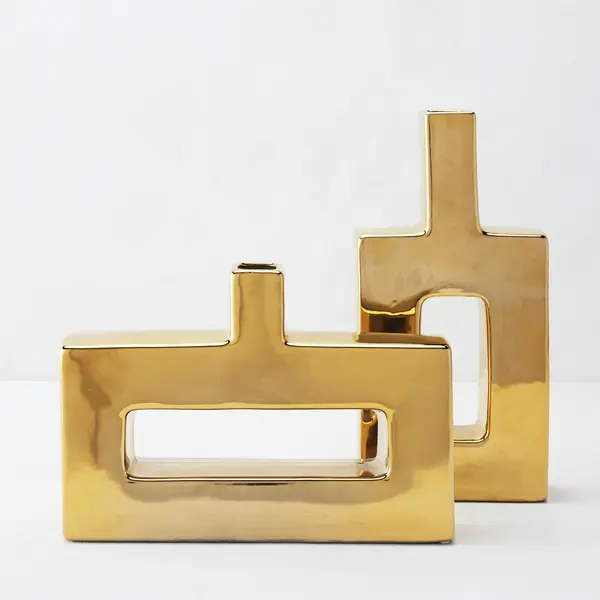 Z Gallerieās very contemporary gold-hued Miami Vases partner successful design with optional functionality. We've created these decorative vases exclusively for our customers to enjoy as unique sculptural pieces and/or to fill with decorative foliage.
