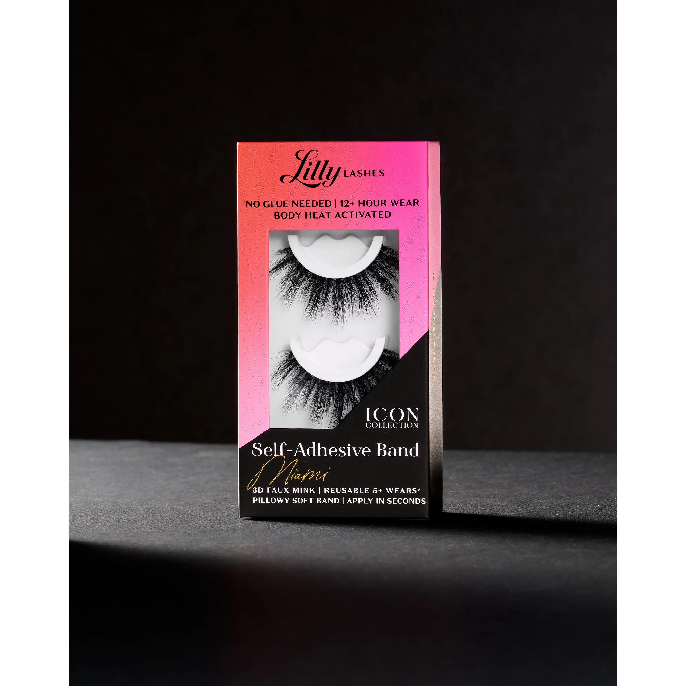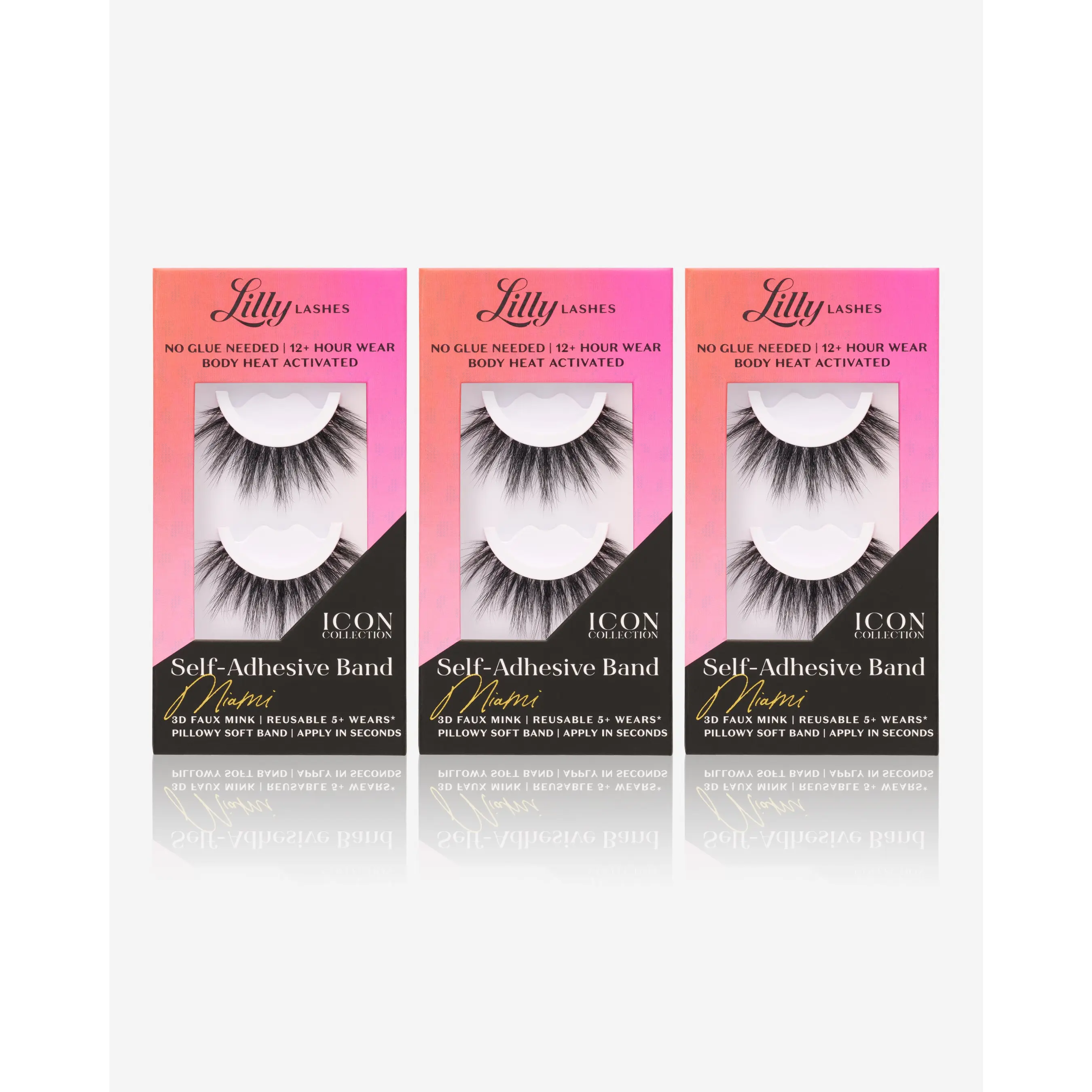 Calling all icons! Discover one of our most iconic styles, now without the glue! Miami is a rounded lash that delivers length, volume, and a touch of seduction to any look. With our body heat-activated, self-adhesive band, Miami reaches new heights, becoming the most iconic lash we’ve ever created.