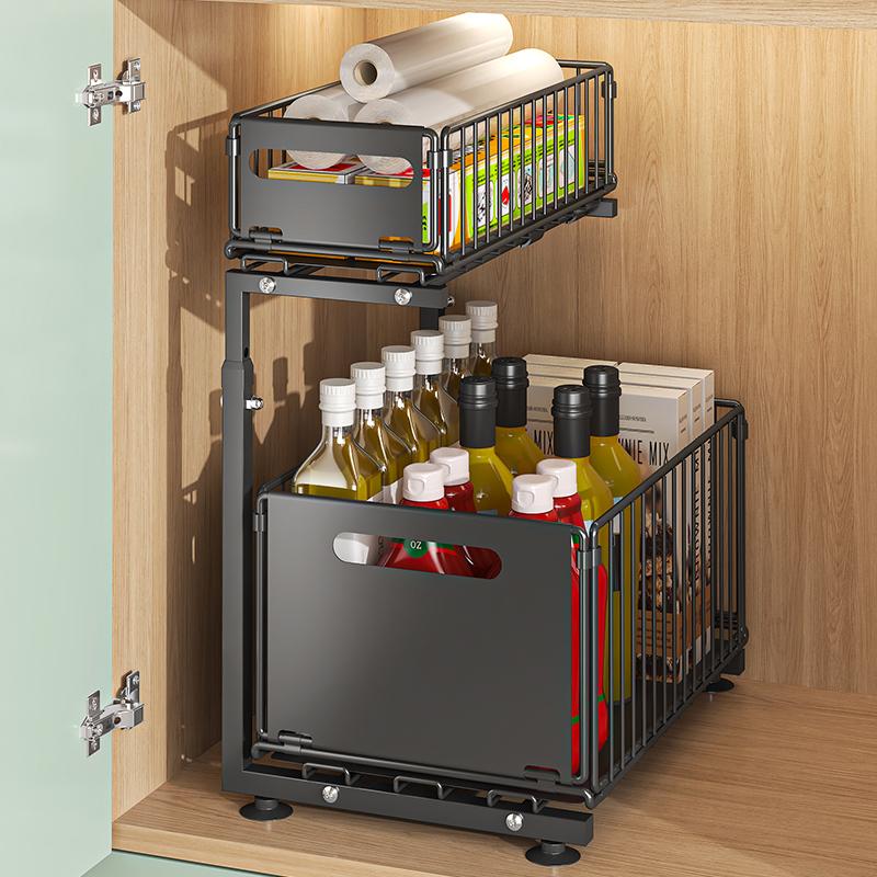 MiAoli Under Sink Organizer, 2 Tier Pull out Cabinet Organizer Baskets with Mesh Sliding Drawers, Slide out Storage Shelf for Home, Kitchen, Bathroom, Pantry, Office Cabinet, Countertop#sinkorganizer #storage #TikTokShopBlackFriday #titkokshop #dhinglishop