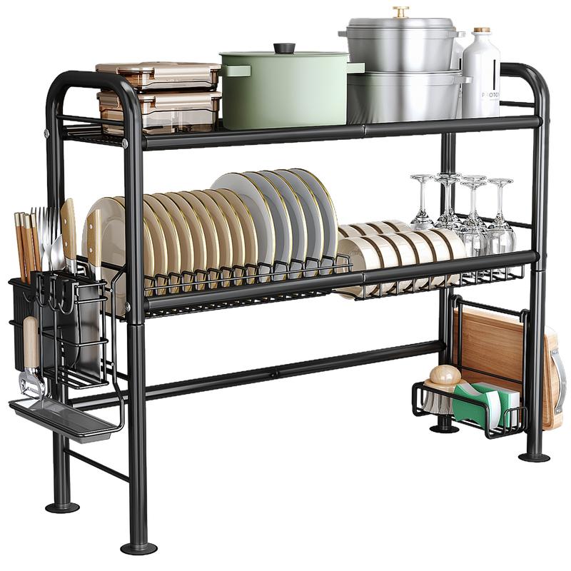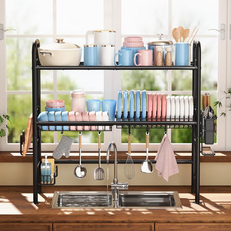 ·Large Capacity Design:A messy kitchen table requires a all in one multi-functional sink rack. Place the dish rack neatly, drain and water, keep it dry, stay away from bacteria, and save money. space.This over sink dish rack with an utensil holder, a cutting board holder, a Cup holder, a sponge holder and 6 hooks is convinient to place your plates, bowls, pots,chopping board, towel, sponge, and dish cleanser etc
