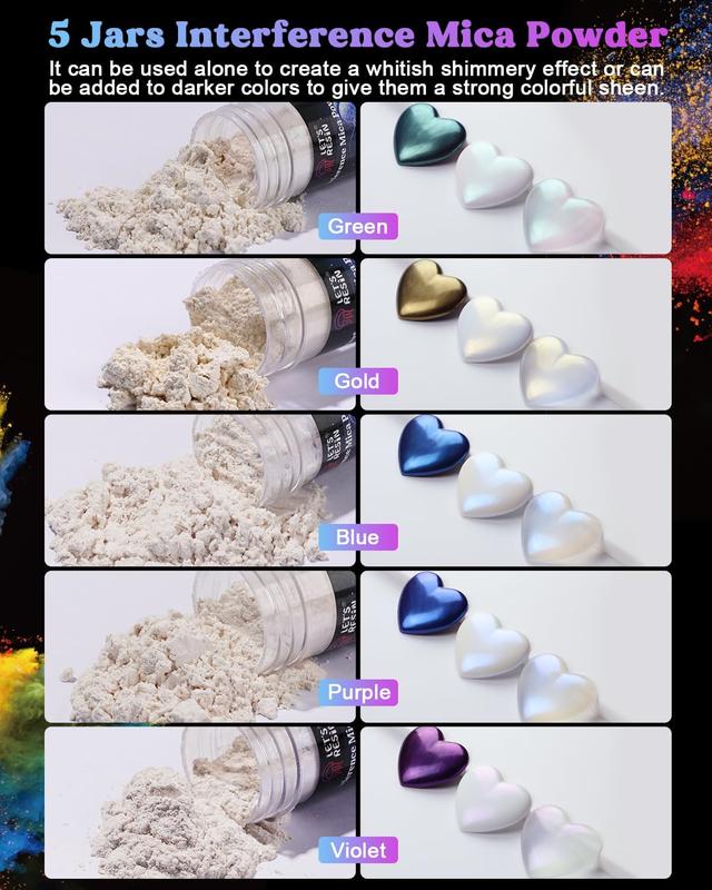 Ā·36 Vibrant Colors Pigment Powder: LET'S RESIN mica powder for epoxy resin contains 36 colors of pigment powder, each color 0.18oz(5g) in an individual jar with a label clearly showing the name of the color on it. You can easily distinguish one from another. Mix different epoxy resin pigments to create the color you want to make your craft look unique.