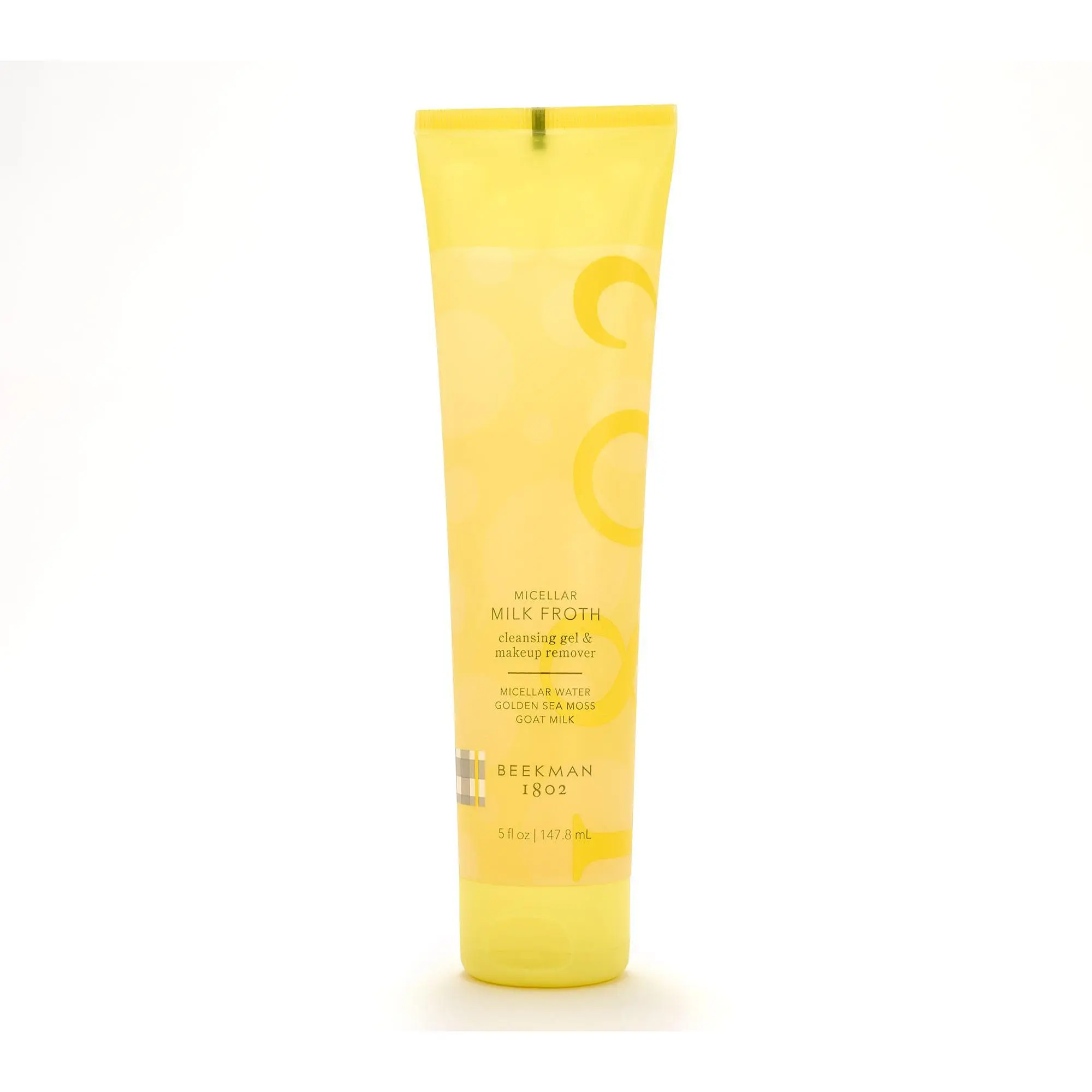 Bubble up with Beekman 1802's Micellar Milk Froth cleanser to wash away the day! The cleansing gel transforms into a frothy foam to help remove makeup, dirt, and excess oils, while helping to moisturize skin. And it helps improve visible signs of aging in skin, particularly in skin's suppleness and look of skin texture.