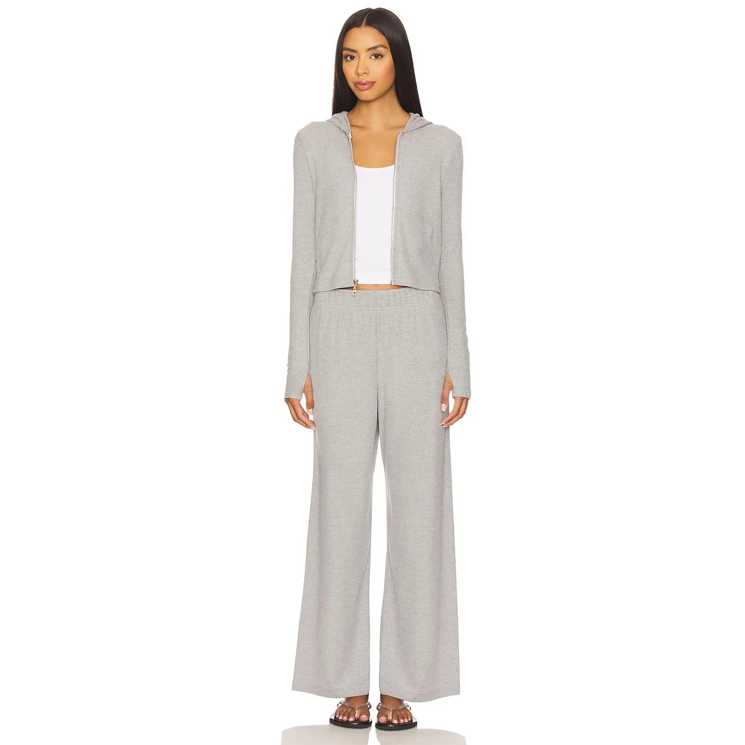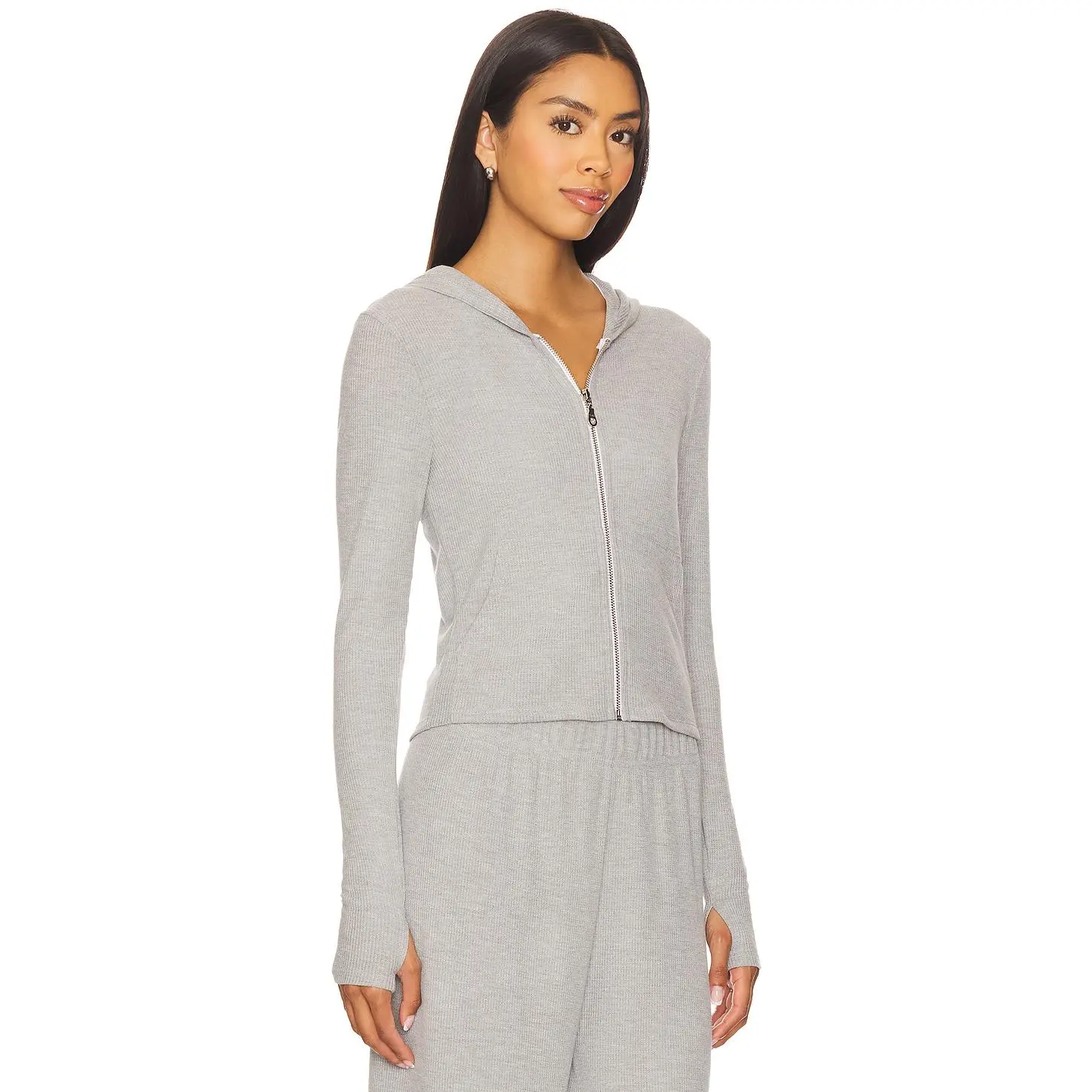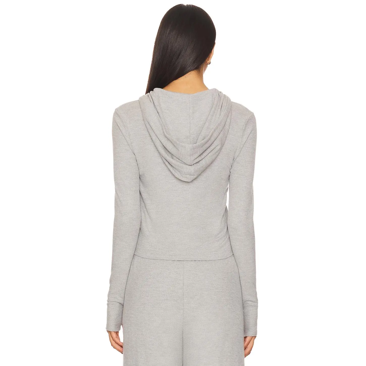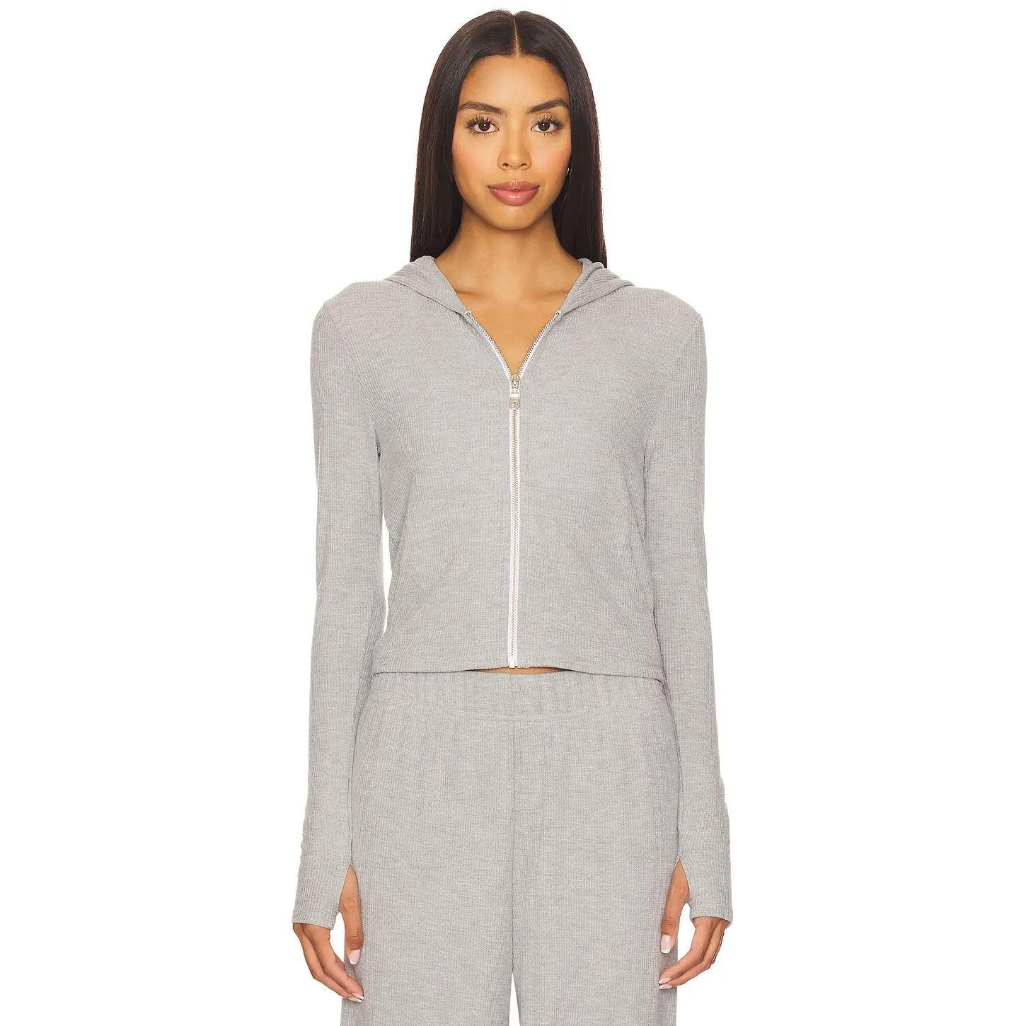 5. Michael Lauren Aris Fitted Crop Zip Up Hoodie in Heather Grey