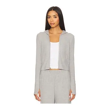 Michael Lauren Aris Fitted Crop Zip Up Hoodie in Heather Grey