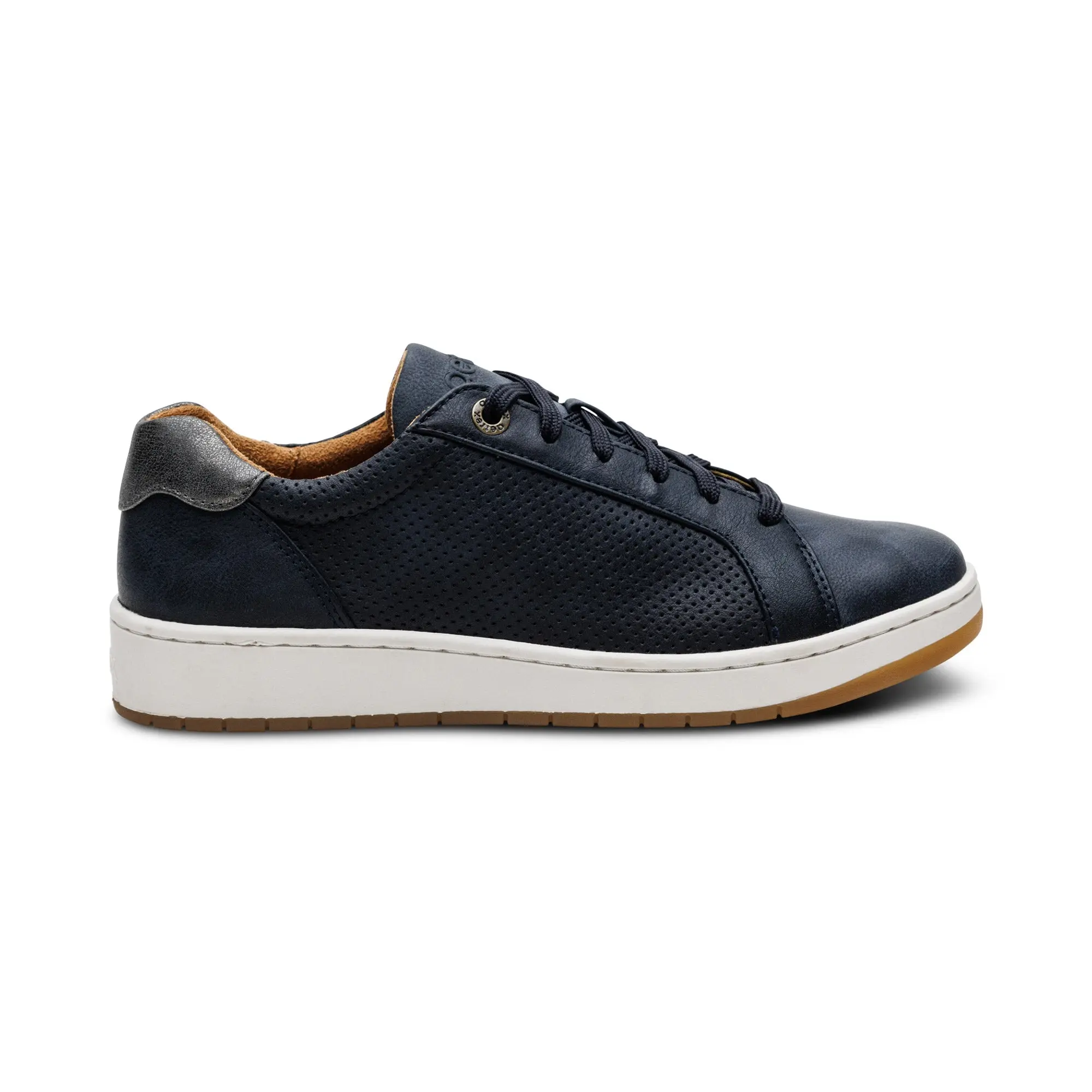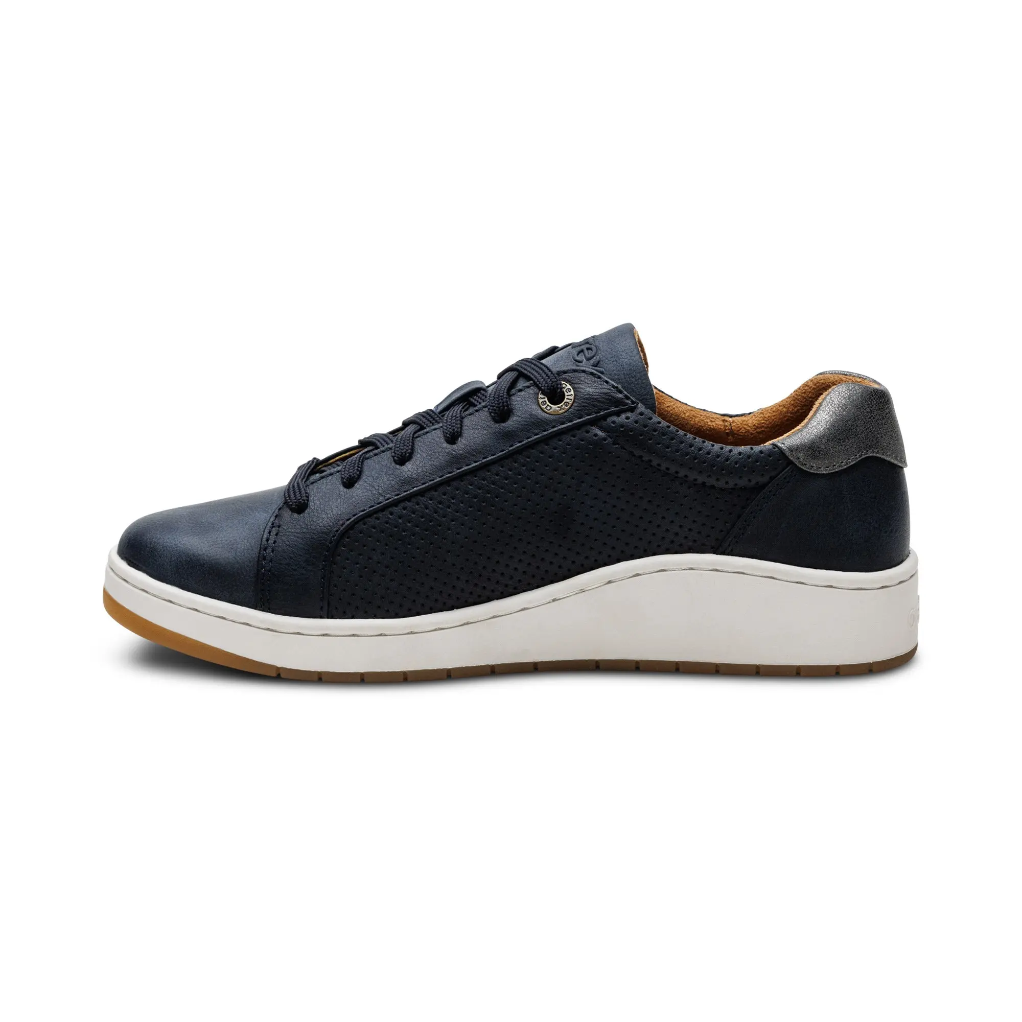 Step into effortless comfort with the Michaela Arch Support Sneaker. Designed with Aetrex’s signature orthotic system, these sneakers support your arches, reduce pain, and keep you energized all day. A soft padded heel collar, breathable lining, and removable insole offer a personalized, blister-free fit. Finished with a sleek PU upper and balanced low-profile lift, Michaela delivers timeless style and comfort that moves with you—from errands to evenings out.