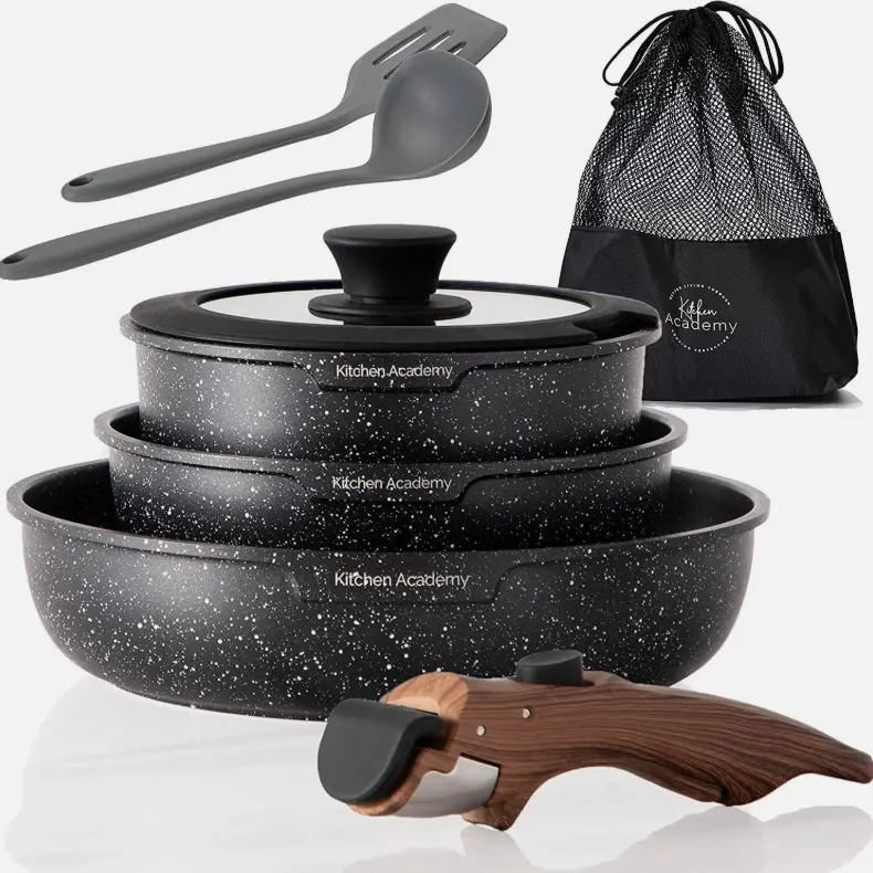 This set includes both pots and pans, offering versatility for various cooking needs. Suitable for a variety of dishes, this set is a must-have for any kitchen. It combines functionality and convenience, enhancing your cooking experience.
