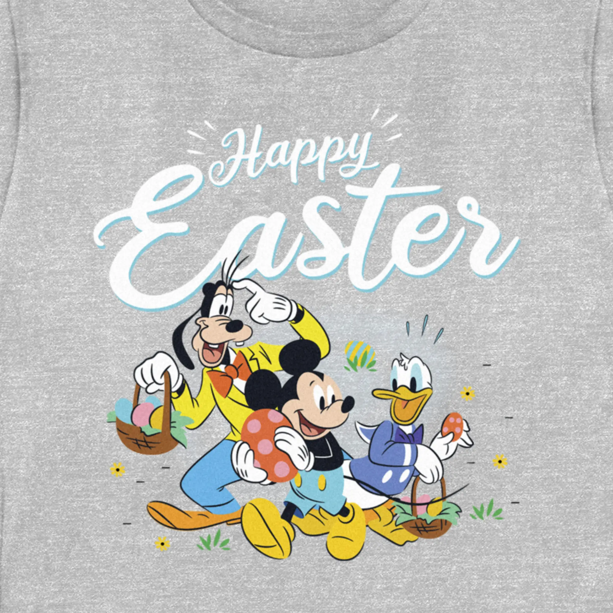 Who knew that dressing "mousey" could be so cute!? Celebrate Walt Disney's most iconic character with this officially licensed Disney Mickey & Friends Happy Easter Friends Women's Graphic T-Shirt! This fun Easter-themed tee features a colorful graphic of Mickey, Goofy, and Donald Duck having an Easter egg hunt printed across the front. Grab some new Mickey and Friends apparel for the whole family today and make your Easter celebration a memorable one!
