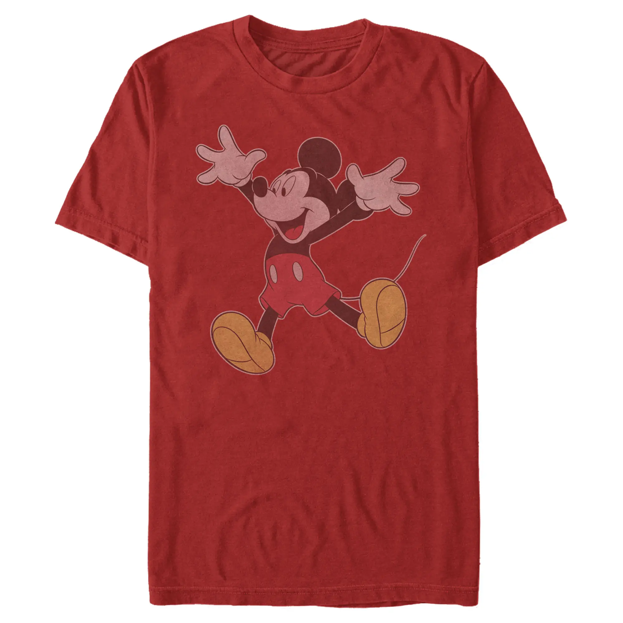 Who knew that dressing "mousey" could be so cute!? Celebrate Walt Disney's most iconic characters with this officially licensed Disney Mickey Mouse and Friends Happy Jump Men's Graphic T-Shirt. This adorable tee features a faded distressed graphic of the one and only Mickey Mouse smiling and jumping up with excitement across the front. Add this tee to your Disney collection for the perfect style on your next trip to Disneyland!