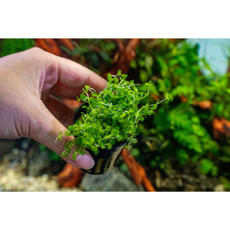 Micranthemum ‘Monte Carlo' is a low growing aquatic plant that originates from Argentina. It is a perfect foreground plant that if given sufficient lighting and nutrients can grow into a thick carpet of green foliage. The leaves are small and round with a beautiful bright green coloration that can nicely offset any neutral toned substrate. This plant is very similar to Hemianthus Callitrichoides (HC/Dwarf Baby Tears) but the leaves are larger and in our experience, its easier to grow. When hobbyist are having trouble growing HC, we recommend giving Monte Carlo a try.