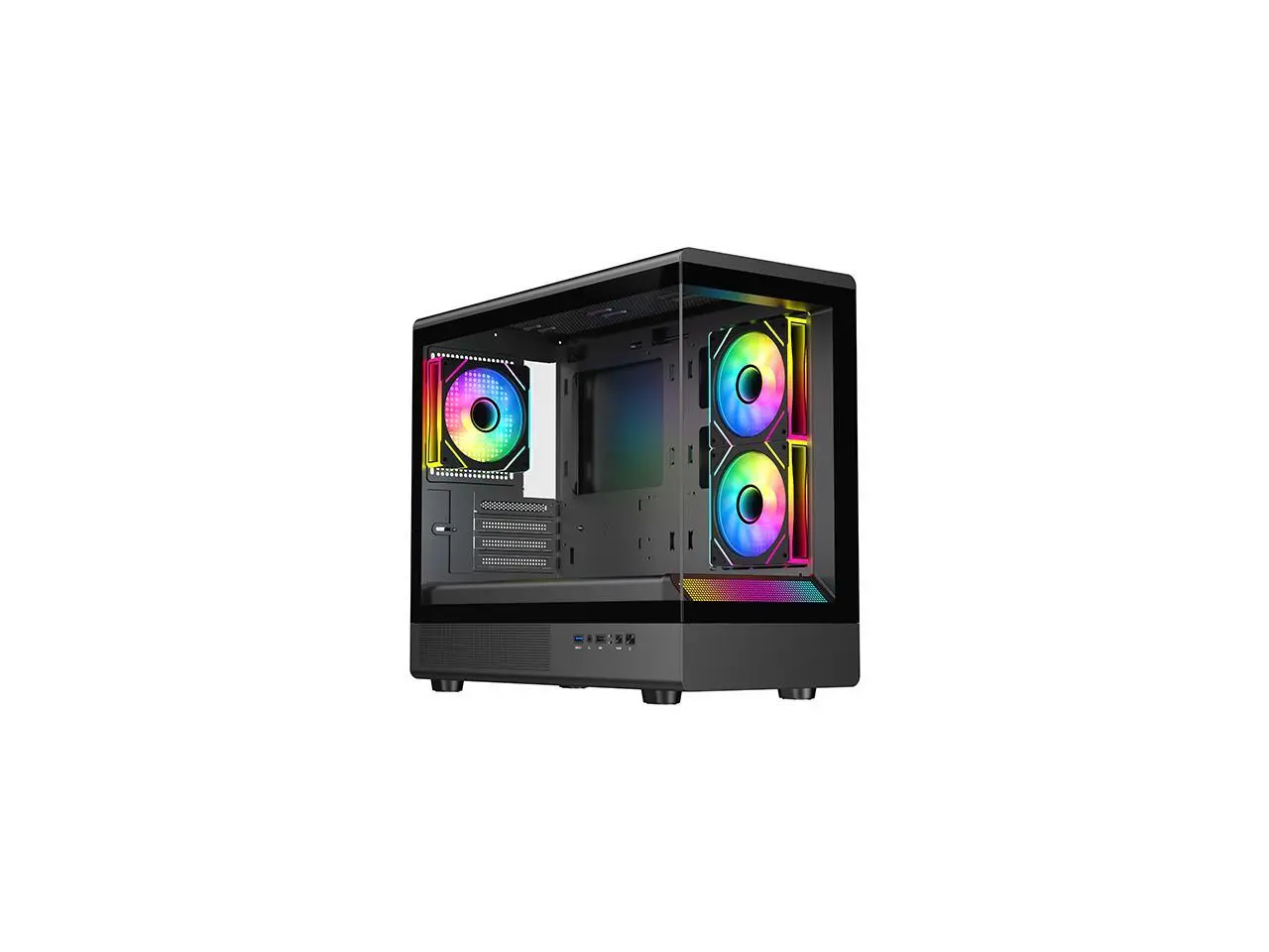 DIYPC ARGB-M1-BK Black USB3.0/ Type C Tempered Glass Micro ATX Gaming Computer Case w/ Dual Tempered Glass Panel and 3 x ARGB PWM Fans (Pre-Installed)