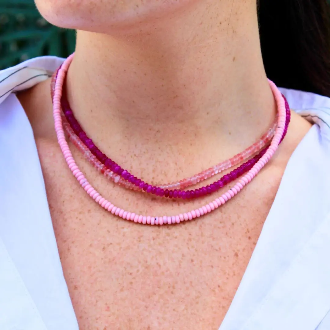 This gorgeous Micro Beaded Necklace features stunning natural quartz beads in a clear pink color. Its AAA+ quality ensures a lasting, high-end piece. This versatile necklace can be layered with other pieces or makes a statement on its own. Add a touch of elegance and sophistication to any outfit!