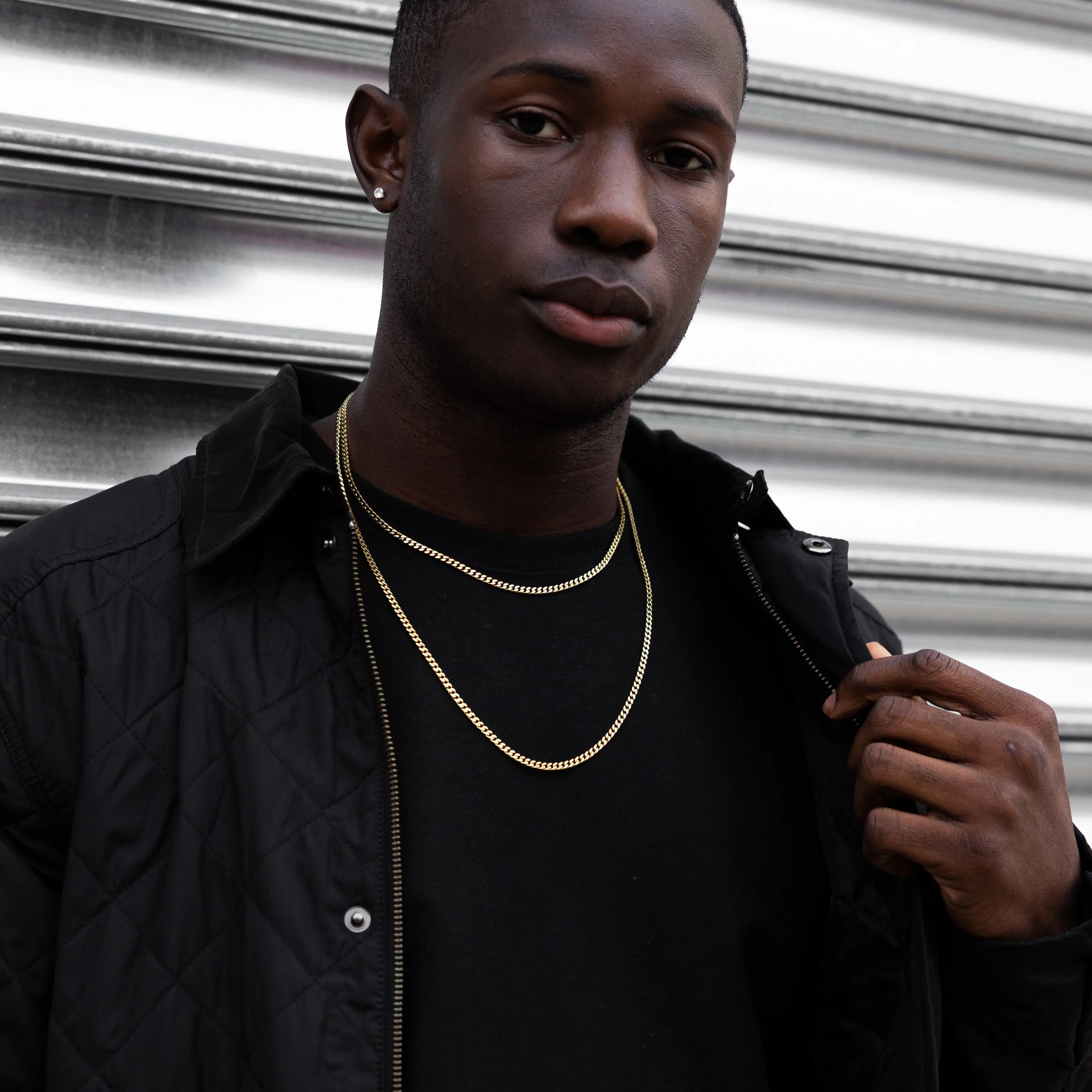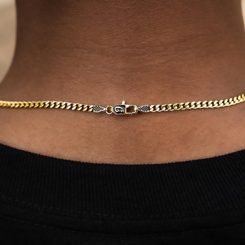 Our iconic Cuban, reimagined in a refined 3mm width. Crafted in 18k Yellow Gold plating, this sleek chain balances subtle shine with everyday durability. Wear it stacked with other pieces or let it stand alone for a clean, classic look.