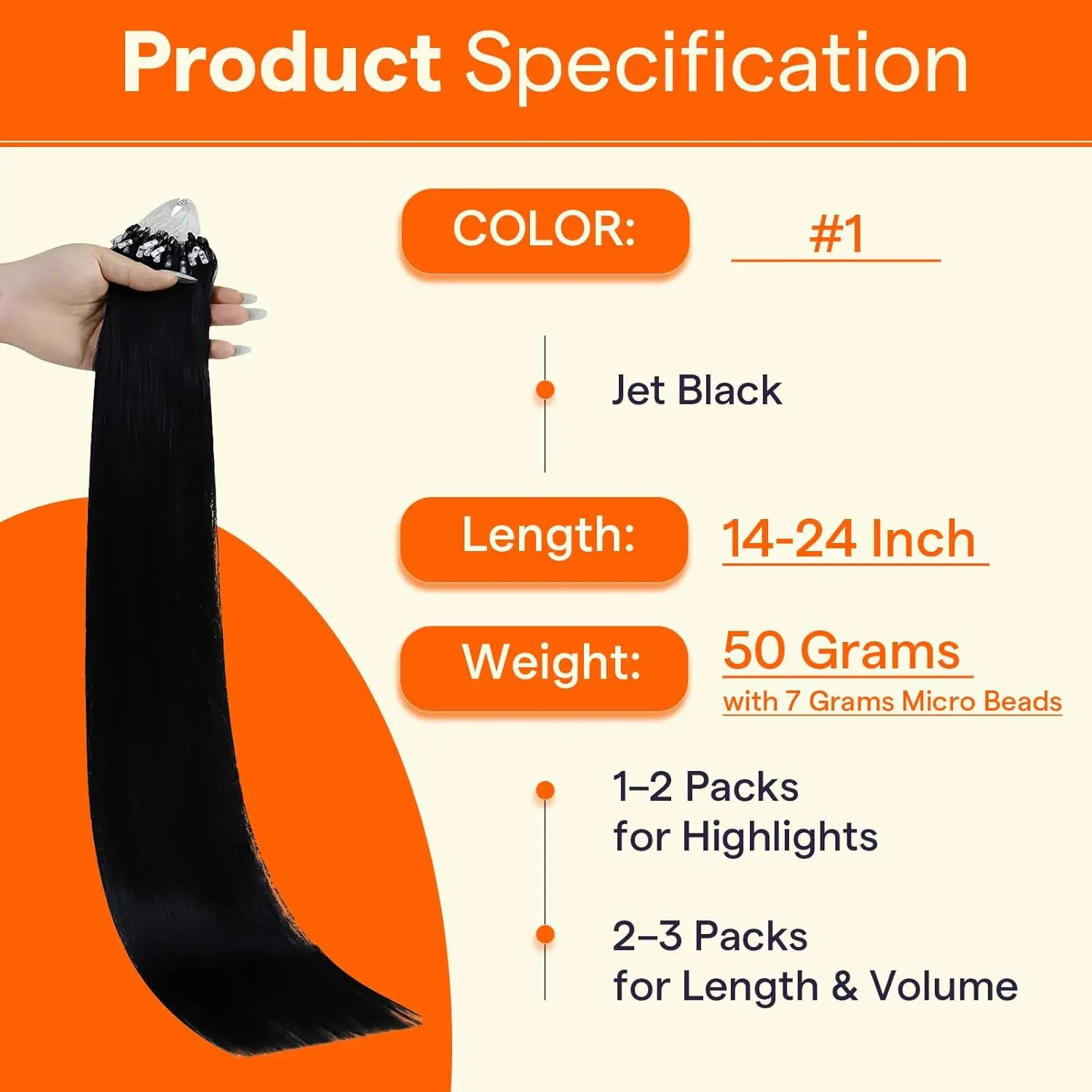 #1 Jet Black, 18inch-50g