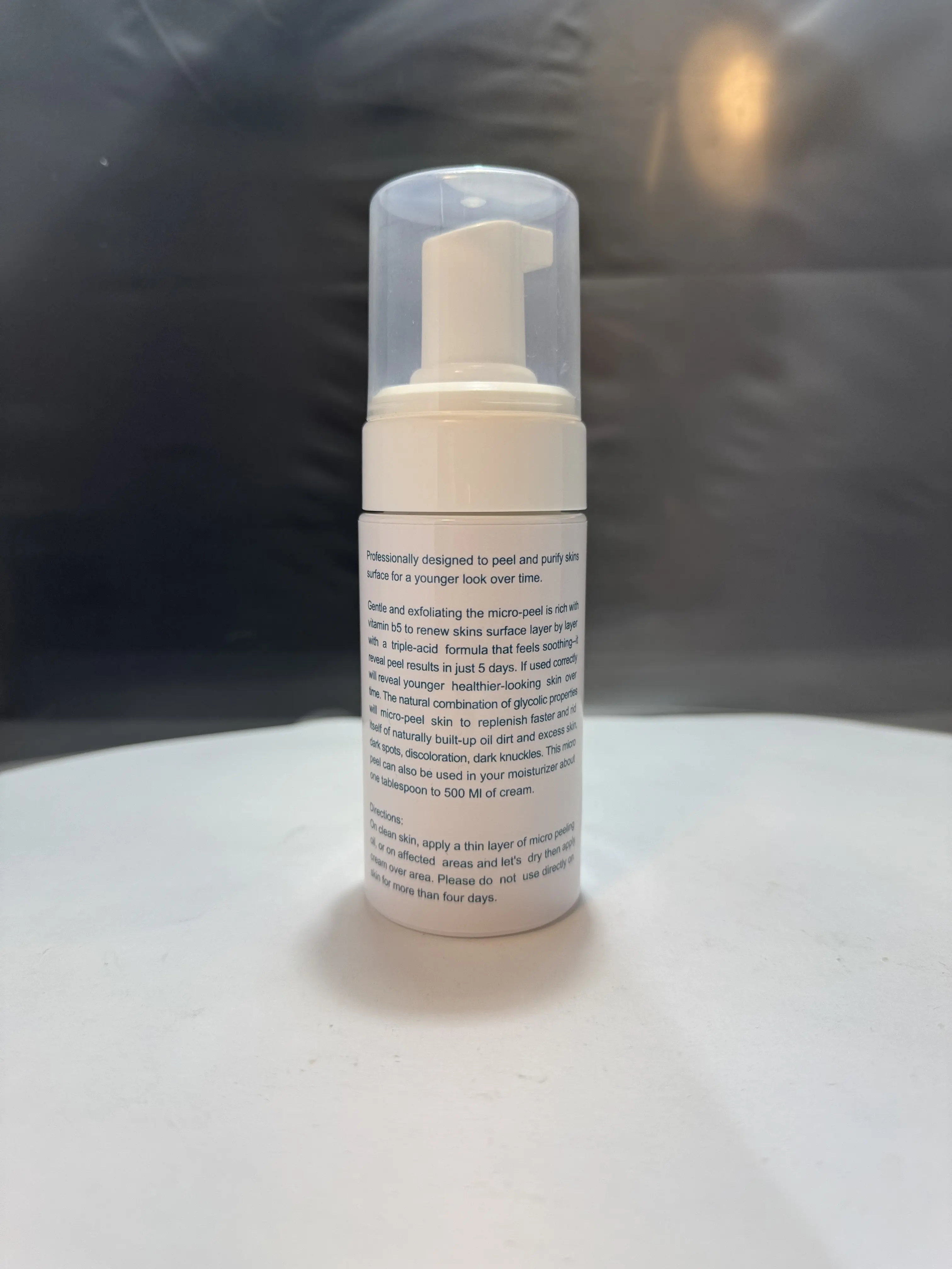 The bottle is licking from the top And I start using the product. My Skin damage wrinkle I did not see any peel or the skin coming out of my skin