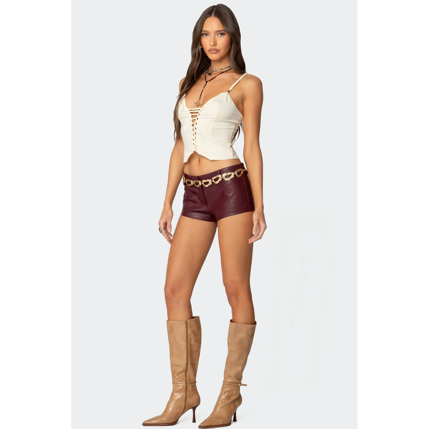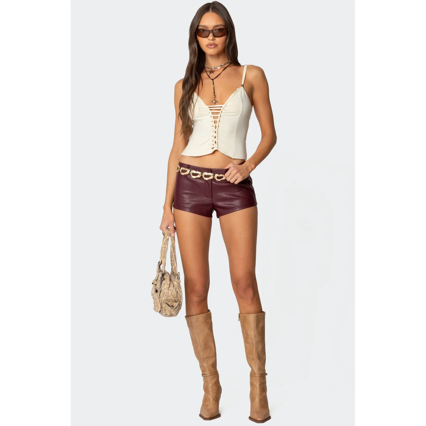 Definitely order a size up if you’re on the thicker side! But super cute and are darker once received. The picture may look lighter because of the lightest they are a darker burgundy so keep that in mind. Super cute though
