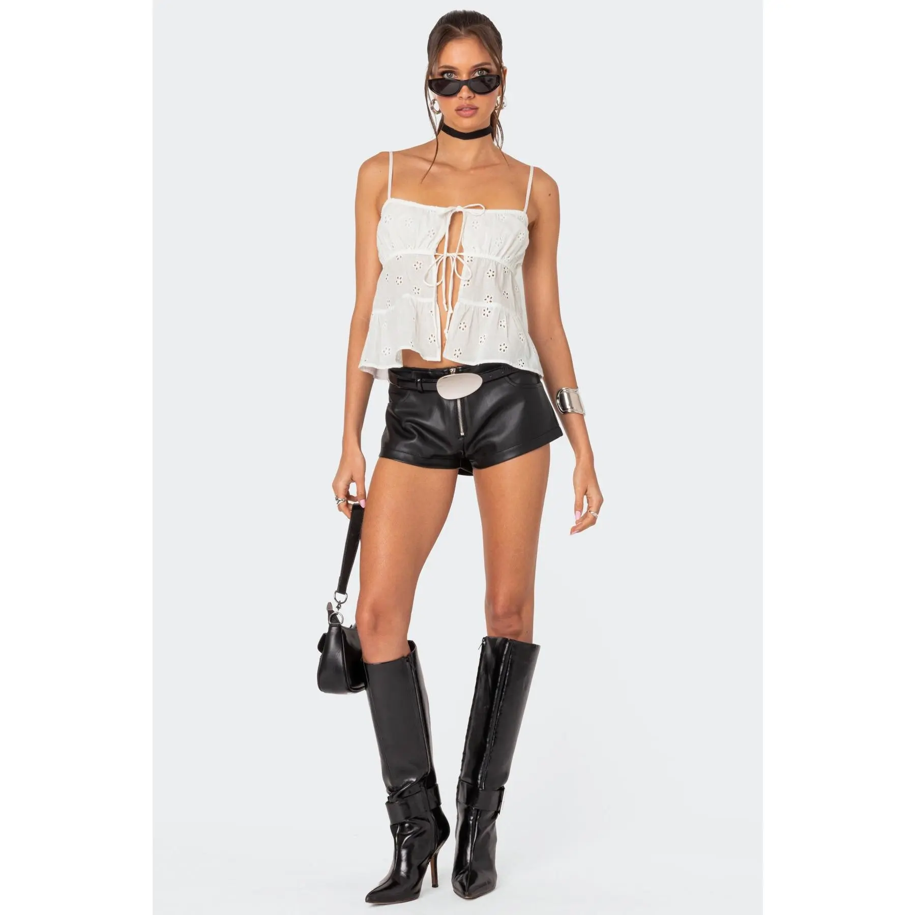 100% yes @Edikted #edikted #ediktedad #ediktedhaul #ediktedjeans #ediktedtop #viral #trending #microshorts #minishorts #leathershorts #goingoutoutfit #outfitinspo #summerstyle