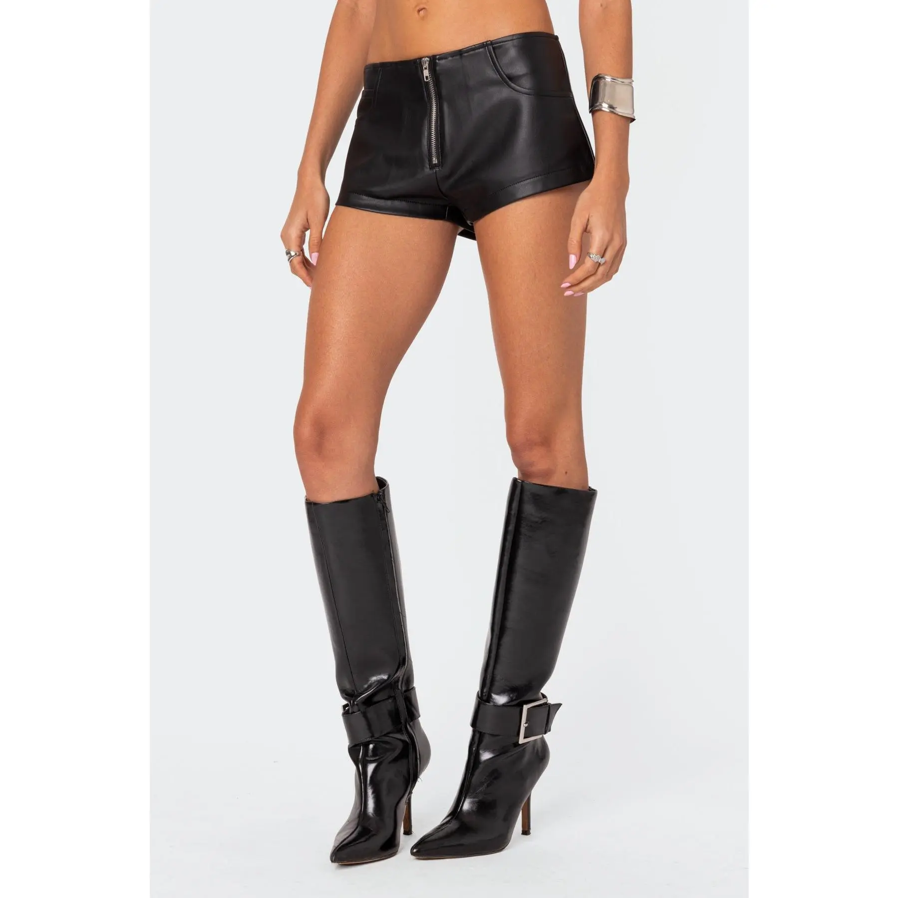 IM OBSESSED @Edikted #microshorts #goingoutoutfit #leathershorts #collegeoutfits #outfitinspo
