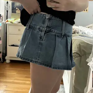 5. Denim Pleated Low Rise Micro Skort