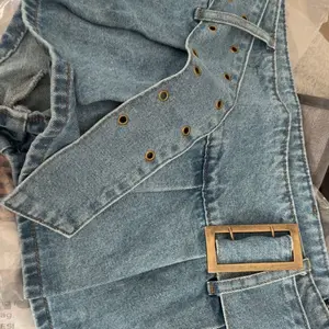It’s a nice thick denim material. belt feels a bit cheap but i think it looks nice without it, and i’ll prob use a different one. fit is great- im 5’2, 150 pounds and i got a large. the shorts under are good coverage so i wont flash anyone even though its super short (which is what i wanted)