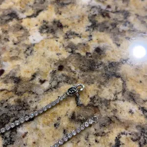 The Micro Tennis Necklace is your everyday shine piece — slim, sleek, and built to stand out. Featuring 1.6mm CZ diamond stones with a 14k White Gold plating over stainless steel, this chain delivers a refined look you can wear solo, double up, or pair with one of GLD’s best-selling pendants.