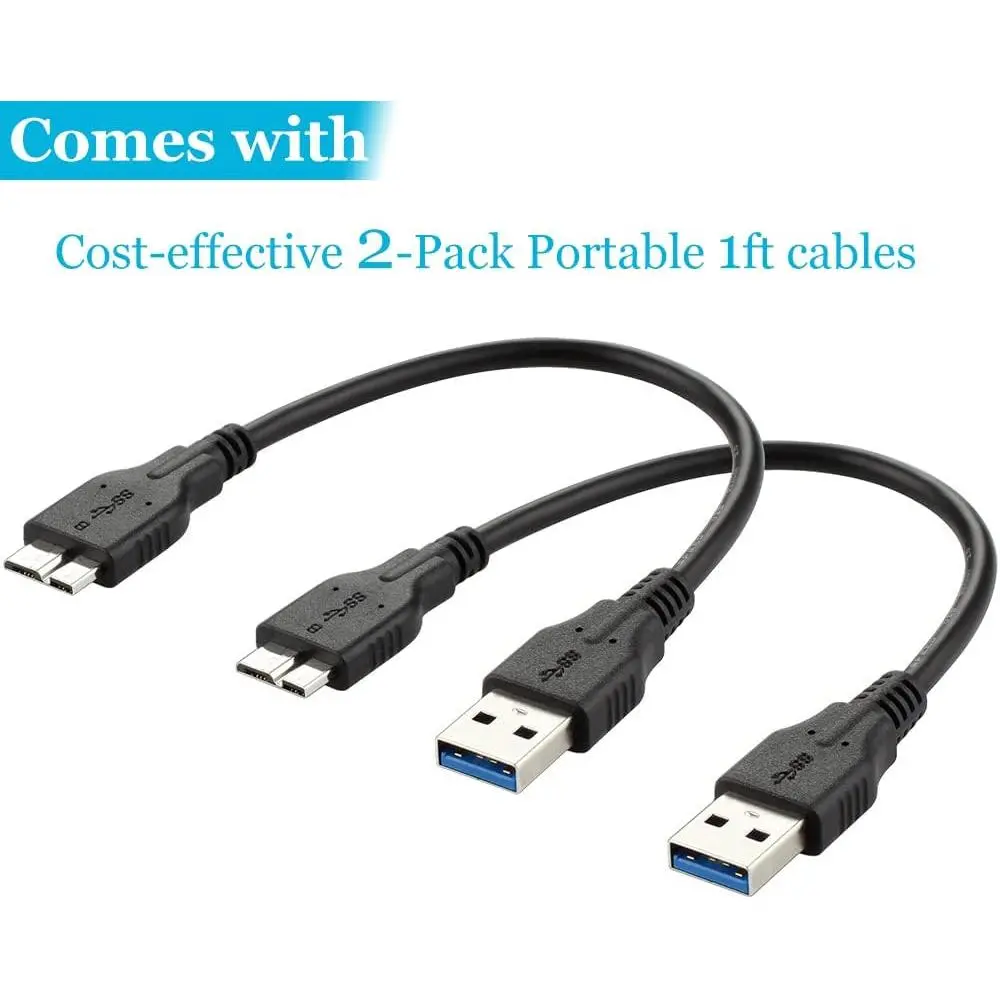 2-Pack 1ft USB 3.0 A to Micro B Cable Compatible with Samsung Galaxy S5, Note 3, Note Pro 12.2, Western Digital,Seagate Hard Drives