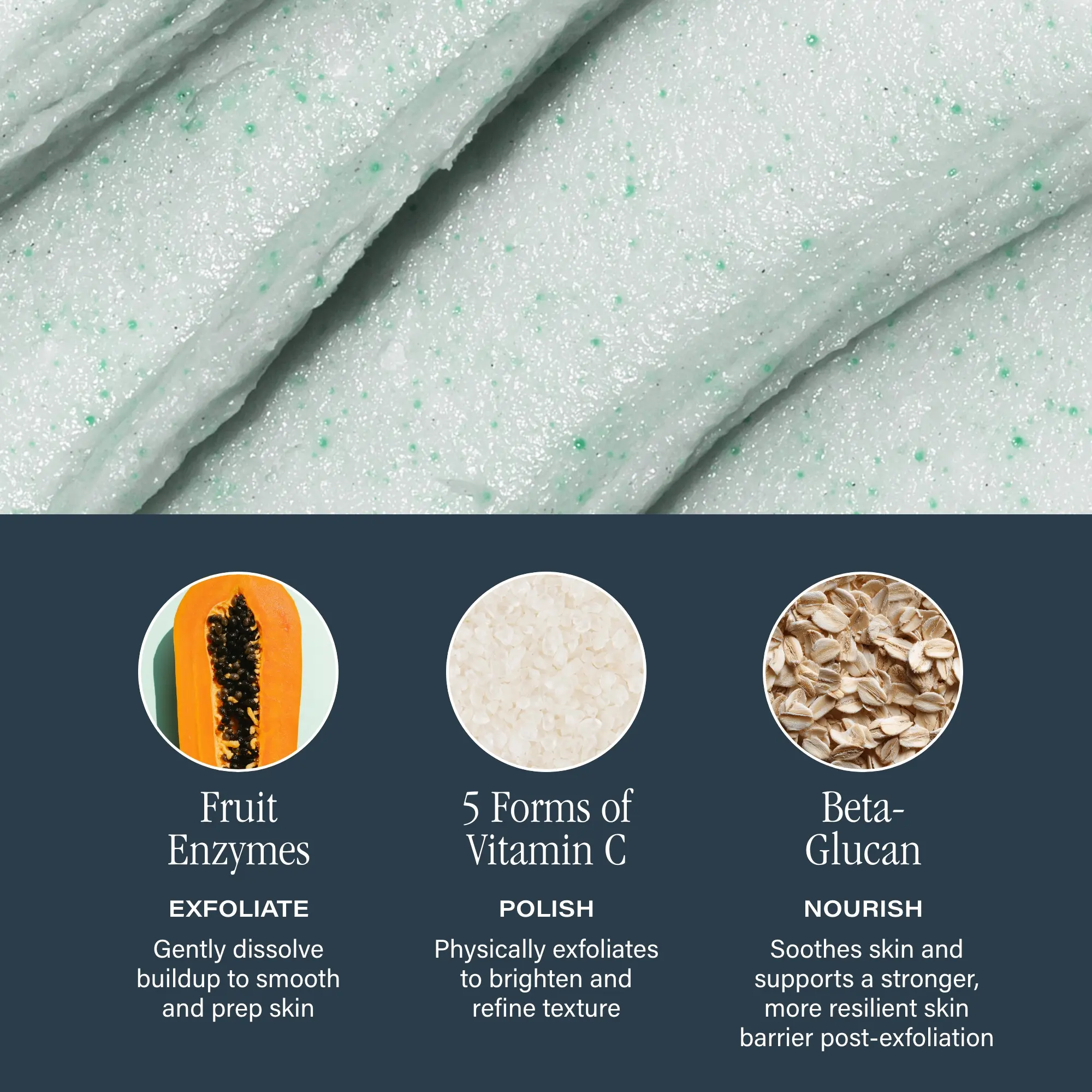 This at-home microdermabrasion treatment delivers spa-quality resurfacing results without the spa price tag. Powered by VC5 Crystal Technology, a proprietary blend of 5 stabilized forms of Vitamin C crystals, it works to buff away dead skin cells, smooth fine lines and wrinkles, minimize the look of enlarged pores, and even out skin tone. Enriched with essential oils including peppermint, kakadu plum, chamomile, lavender, and tea tree, plus papain and essential minerals, it nourishes as it exfoliates — leaving skin hydrated, soft, and glowing, never dry or stripped. The cooling, refreshing, tingly sensation means your skin feels as good as it looks.