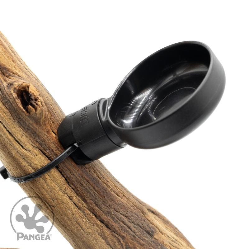 This Pangea MicroDish is a large, easy-to-install feeding dish for adult New Caledonian Geckos like Crested Geckos, Gargoyle Geckos, Mossy Prehensile Tail Geckos, or community tanks like Mourning Geckos. Crafted for arboreal geckos, it attaches securely to vines and branches for easy access. The durable plastic will stand up to any gecko and is easy to remove to clean. The branch mount system is ideal for hiding a food dish in a naturalistic environment for your gecko.