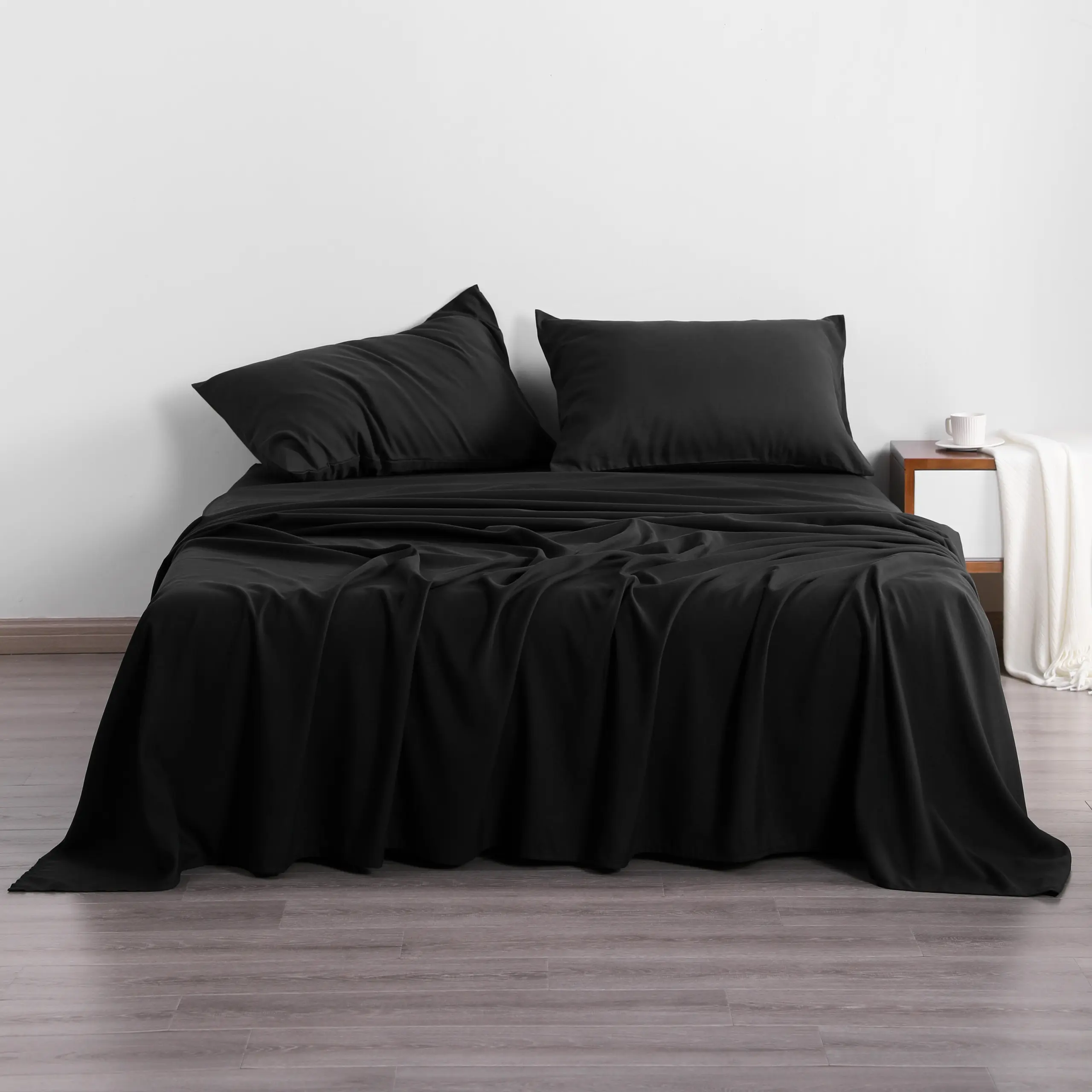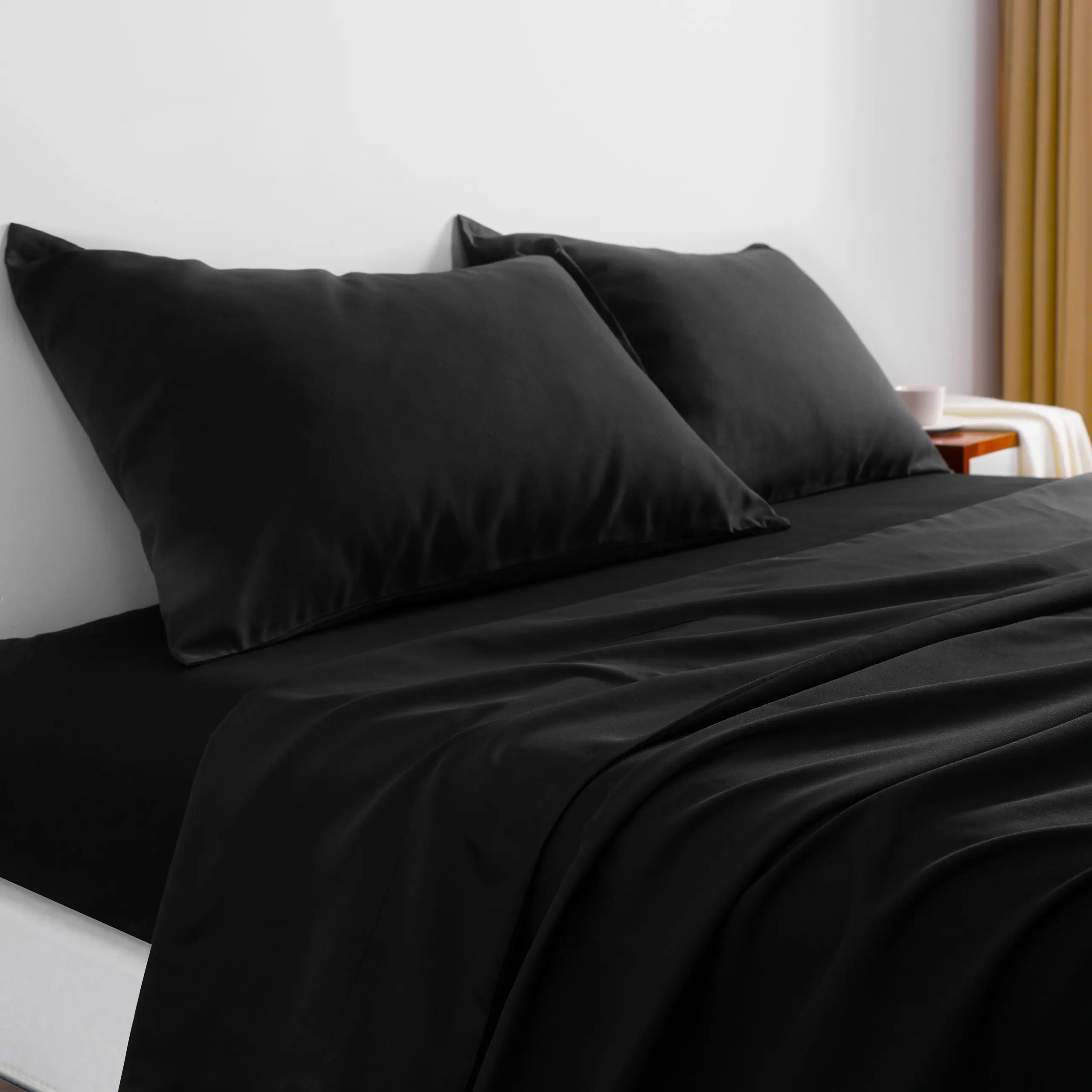 This solid color bed sheet set is made of brushed microfiber (85gsm), offering a soft, smooth, and comfortable feel for everyday use.