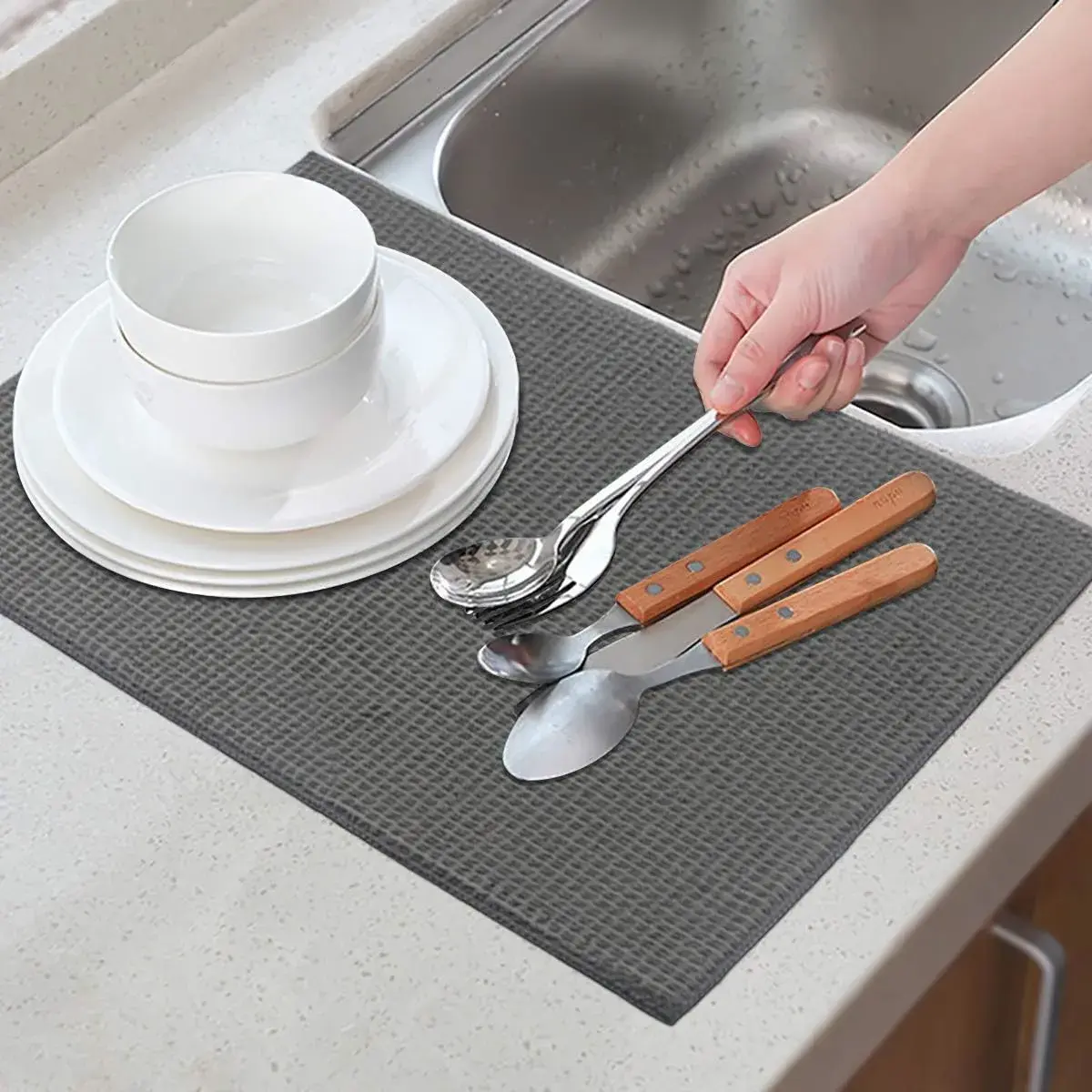 ·Machine Washable:Just toss it in your washer when it's time for a refresh, and you'll be able to use your Dish Drying Mat again and again!