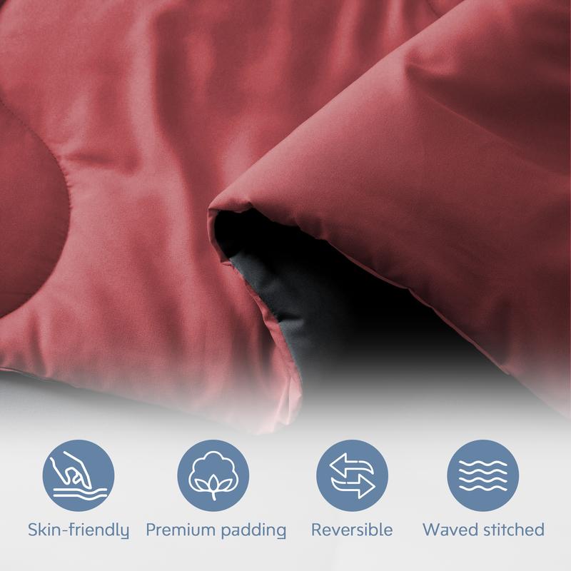 PEACE NEST 3-Pieces Reversible 2-in-1 Lightweight Quilted Comforter Set with Pillowcases Soft Down Alternative Bedding in Multiple Colors Twin Full Queen King Sizes Machine Washable