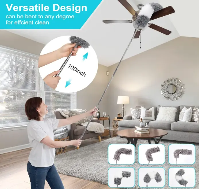 Extendable Duster: microfiber duster has an extra long extendable pole from 30 inches to 100 inches, According to the length you need, feather dusters can help you safe clean everywhere you want, avoid ladder to climb anymore! and with a short Handle which can be easily cleaned regardless of height.