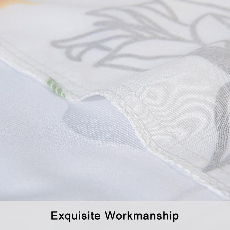 Our duvet cover set is made of nice quality brushed microfiber to provide exceptional softness and comfort, give you a good sleeping experience for all season. This lightweight brushed microfiber is durable, wrinkle, stain resistant and will not shrink in washing like cotton. Use of active printing and dyeing technology makes the color bright and does not fade.