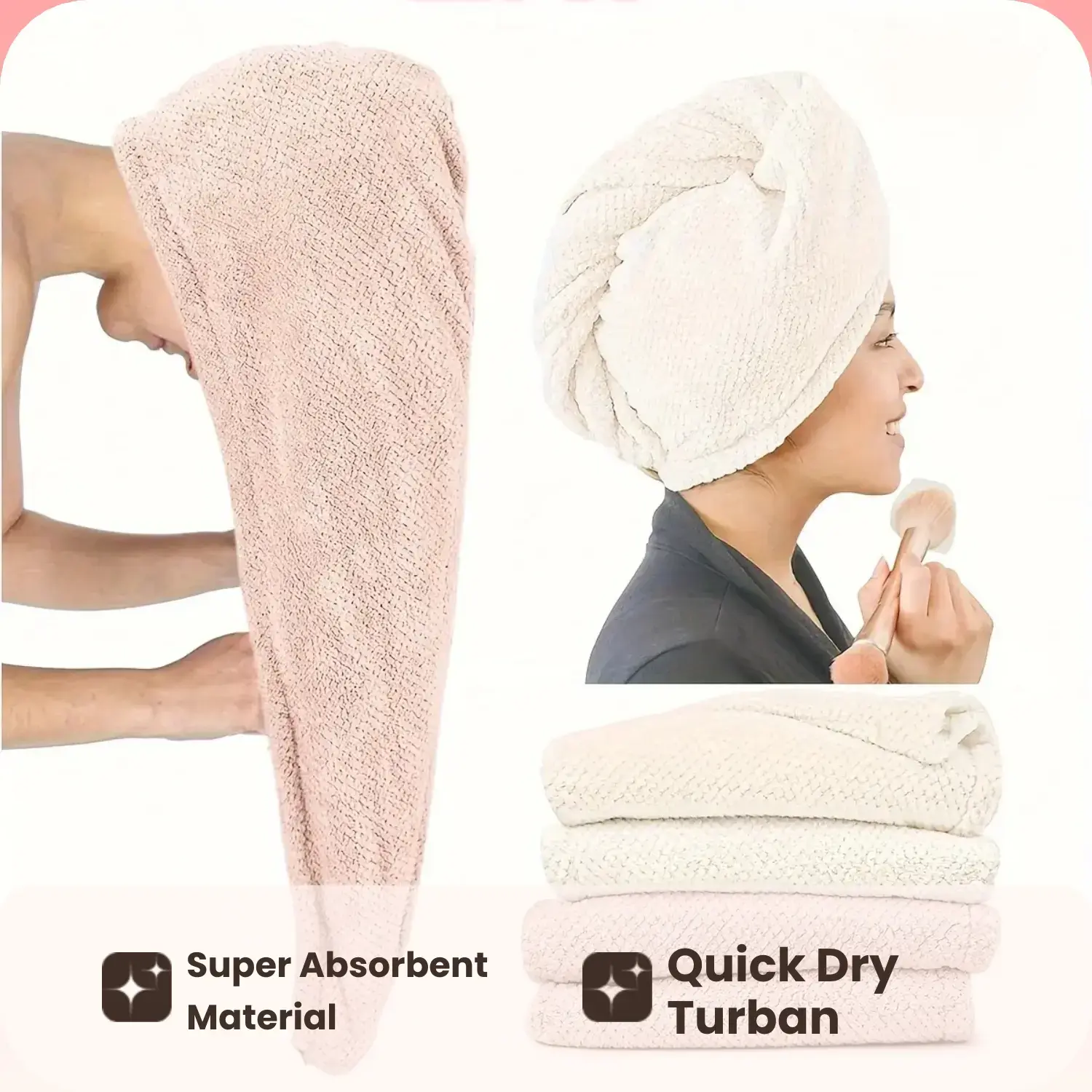 These are so nice!! Soft and easy to wrap up my hair, which is very long!! Absorbs the excess water easily.