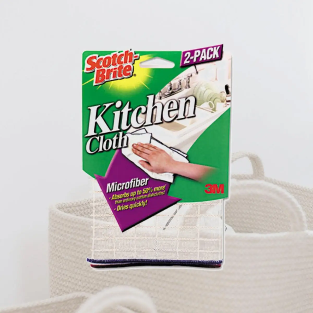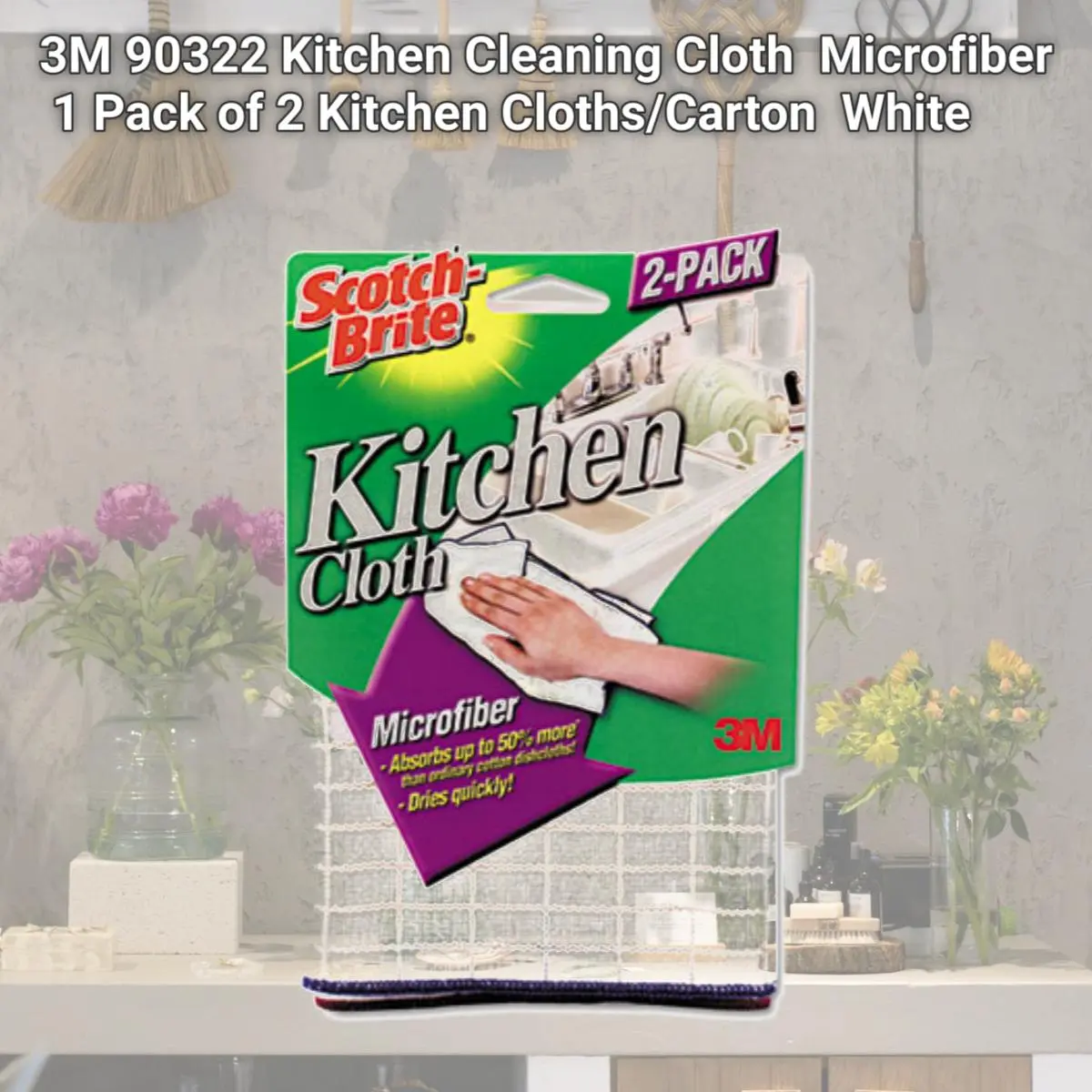 3M 90322 Kitchen Cleaning Cloth Microfiber 1 Pack of 2 Kitchen Cloths/Carton White